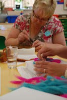 5. Kim Reygate doing her thing with stamps and a resist method which I would describe if I could only get my head round it, all I can say is that EVERYONE’s finished product (at least those I saw) looked incredible.