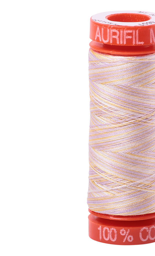 The Aurifil 50wt is strong and thin, and results in remarkably flat and crisp seams. While it is wonderful for piecing, subtle quilting & topstitching, and English Paper Piecing it also works incredibly well for Needle Turn Applique, Bobbin and Machine Lace, Machine Applique (Straight Stitch, ZigZag, Blind Hem and Blanket Stitch,) Machine Embroidery, Dense Machine Quilting, Subtle Machine and Longarm Quilting, Basting, Whole Cloth and Micro Quilting, and Dense Background Designs.