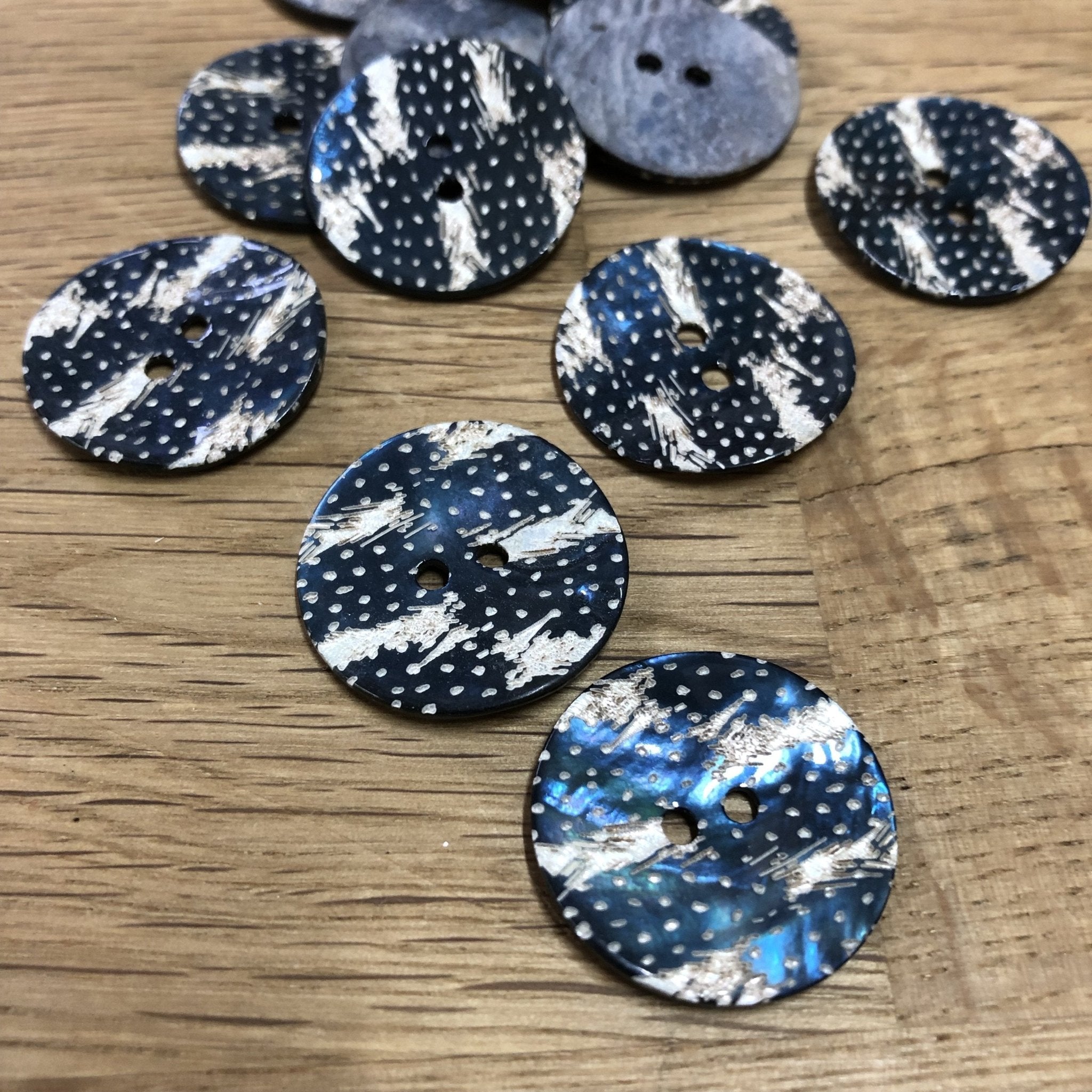Blitz - Navy - Lasered Agoya Shell Button is backordered and will ship as soon as it is back in stock.