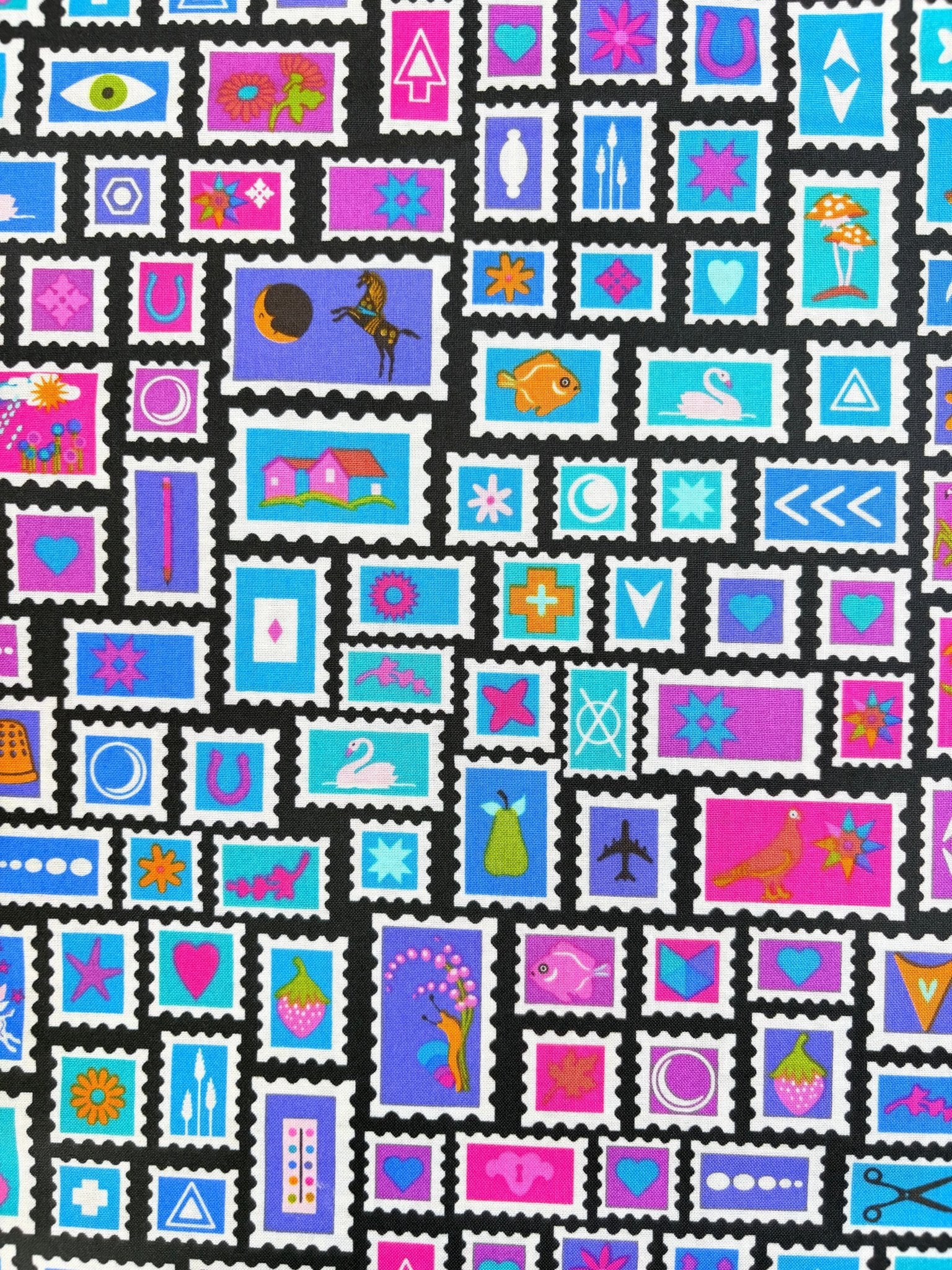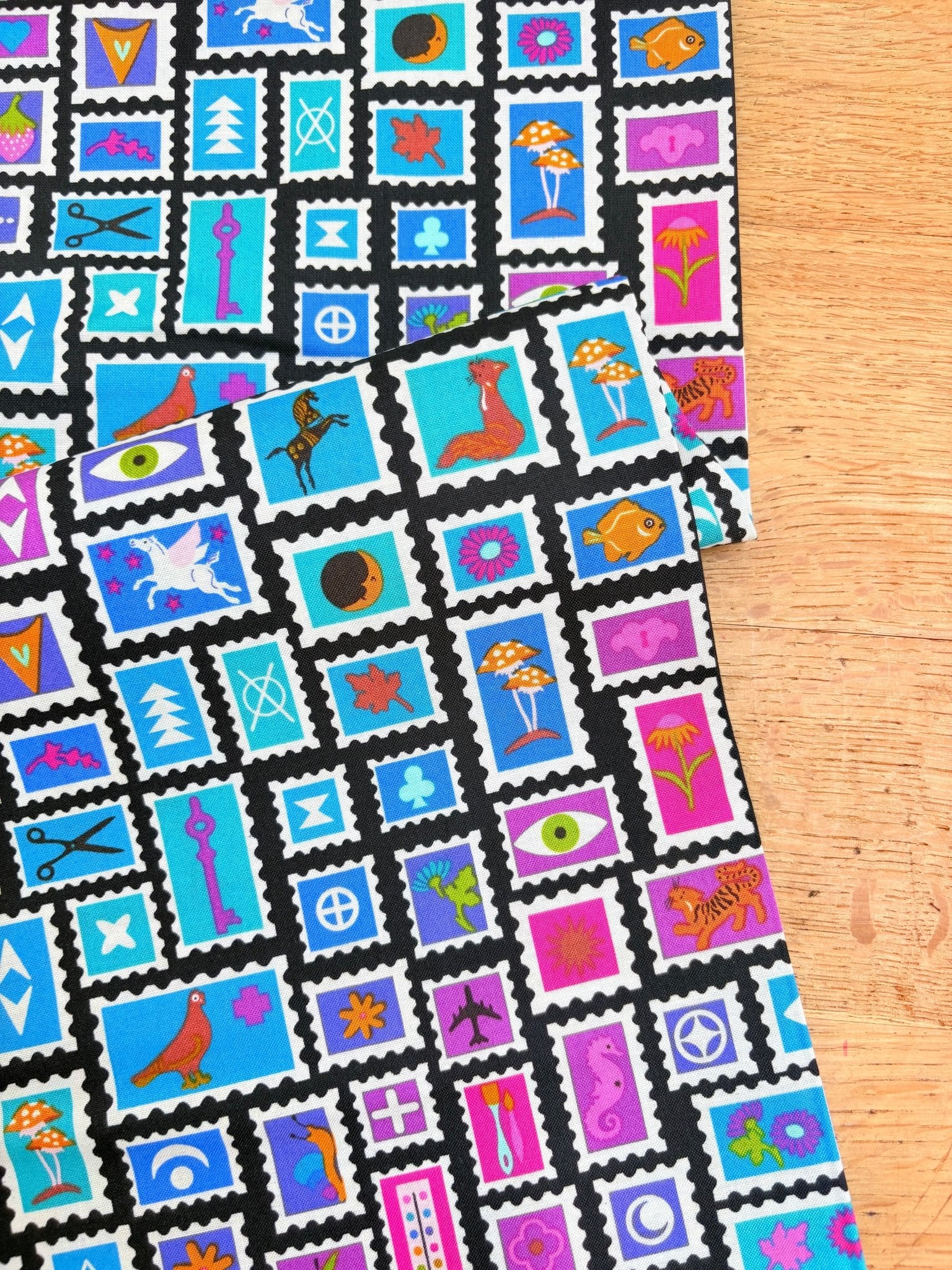 We always love to welcome an Alison Glass collection to the shop, and this one doesn't disappoint. This cute print is perfect for fussy cutting and is reminiscent of postage stamps - and uses Alison's classic colour palette.