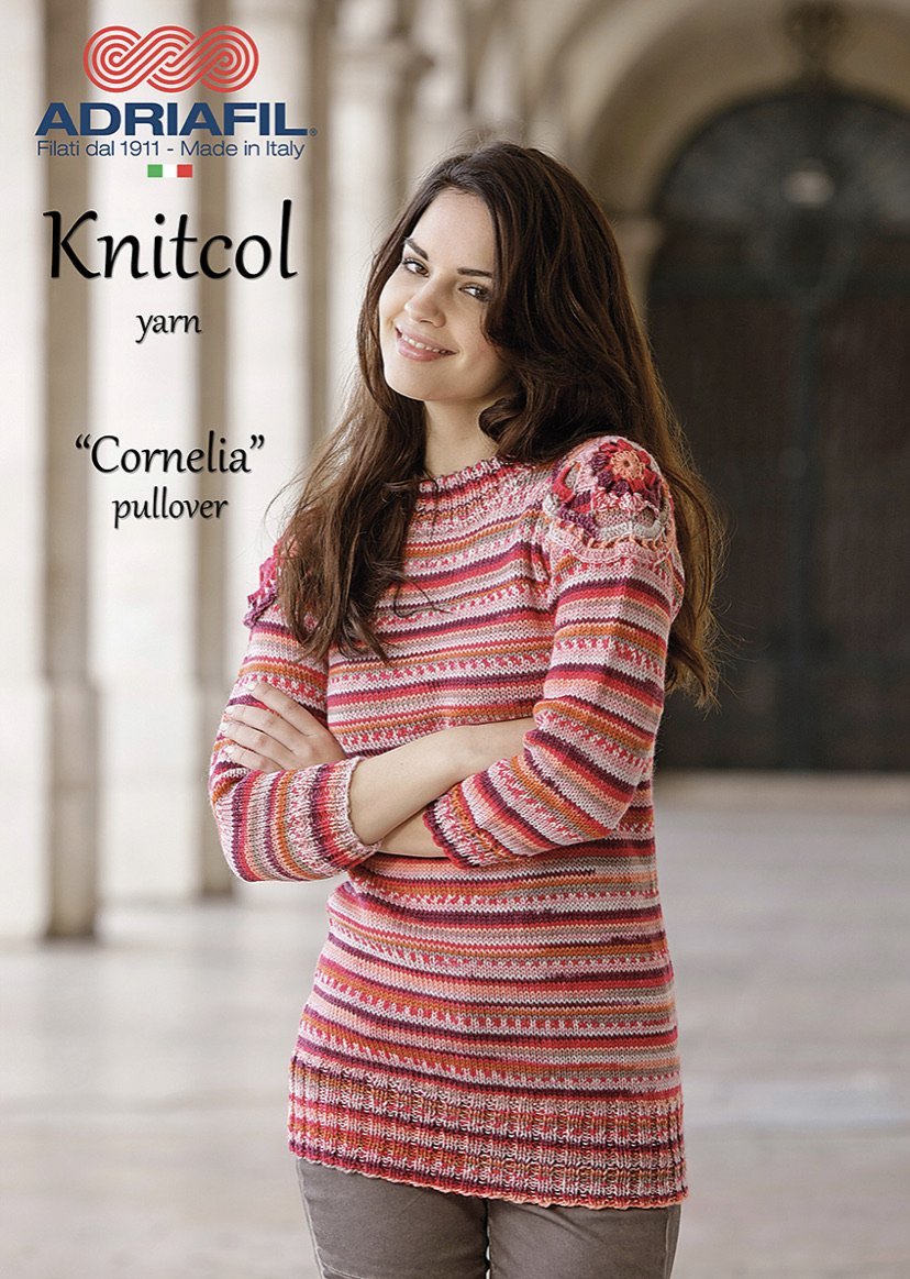 “Cornelia” Pullover Knitting Pattern - Knitcol Yarn - Adriafil is backordered and will ship as soon as it is back in stock.