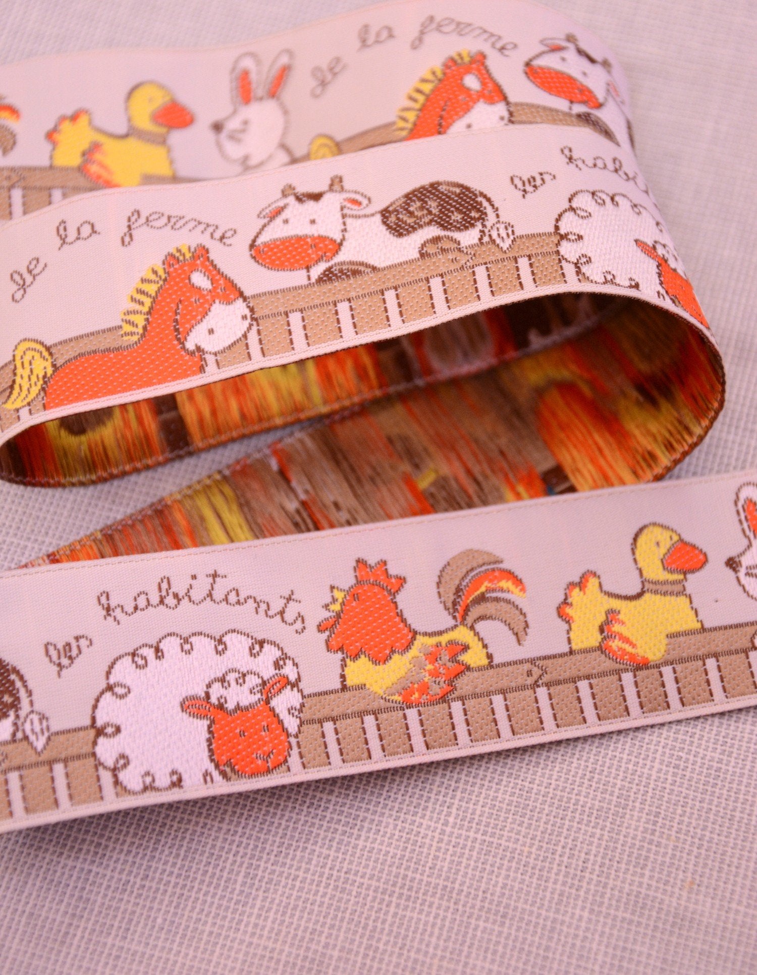 Farmyard Woven Ribbon - 35mm - Orange is backordered and will ship as soon as it is back in stock.