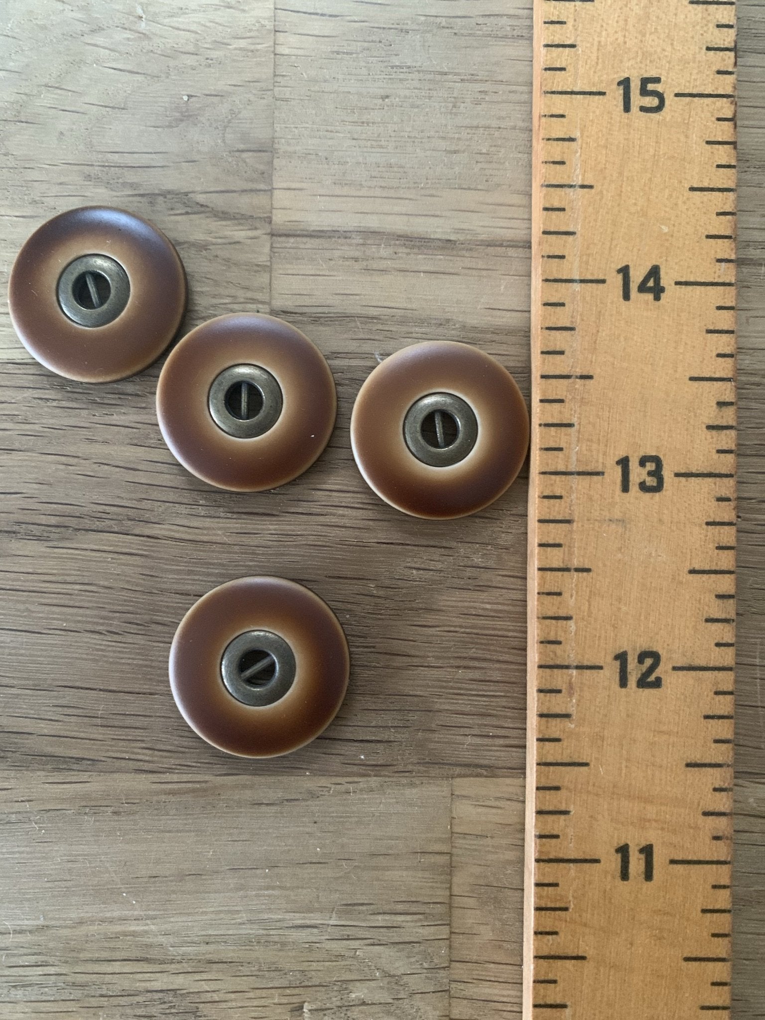 This lovely button has a faux leather finish and an antique brass centre. The price is per button.