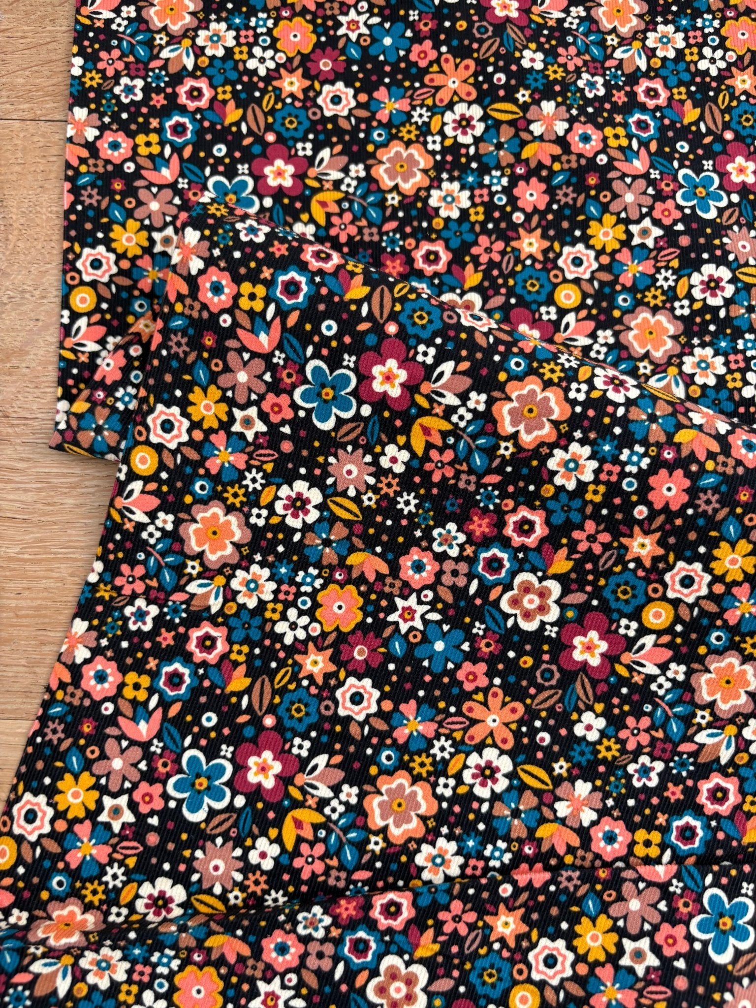 This cotton needlecord is a lovely weight for clothing - both for children and adults. With a retro floral design.
