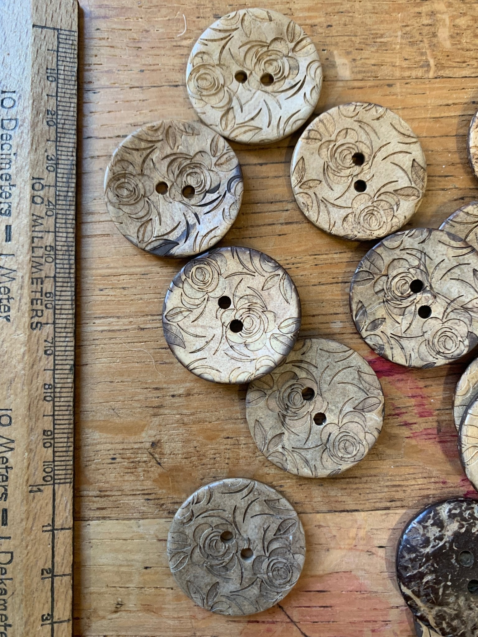 These large coconut buttons have a lovely flower pattern.