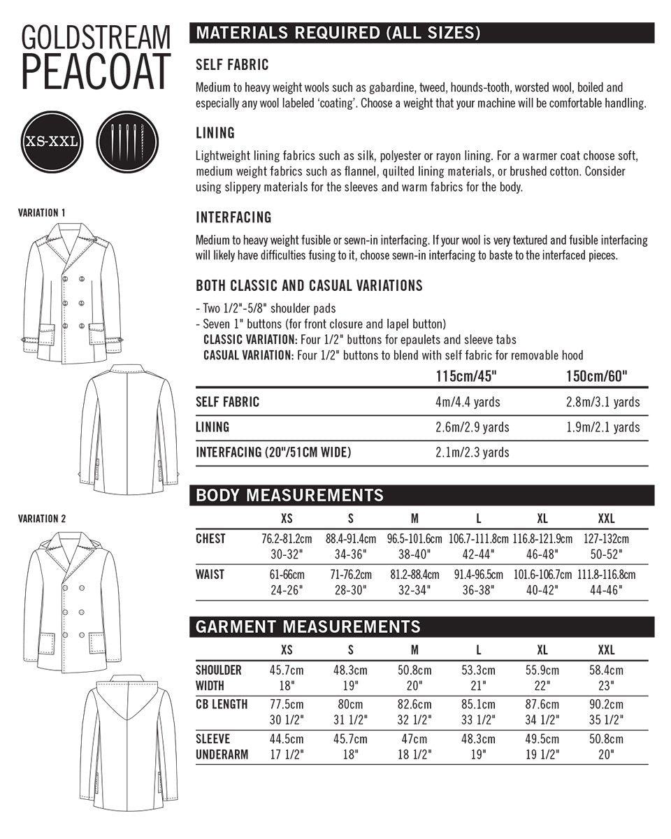 A classic peacoat with modern options, this design is the perfect introduction to menswear tailoring as the detailed instructions will help you create a beautifully finished coat even if you are intimidated by sewing outerwear. The design includes a narrow double breast that sits nicely both buttoned and open.