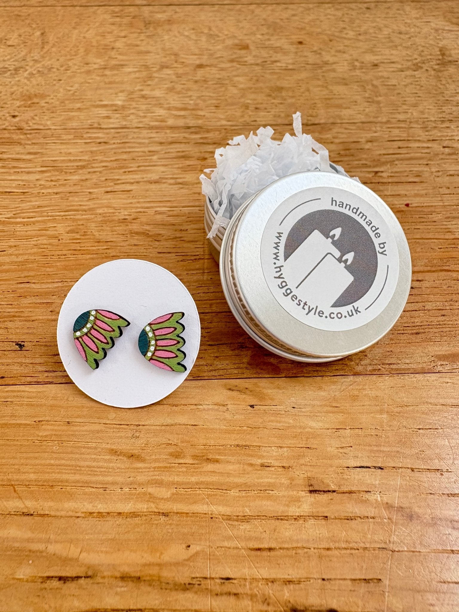 They are ultra lightweight so won’t drag down, and are mounted on stainless steel butterfly studs so are perfect for sensitive ears. Every pair comes beautifully packaged in a keepsake tin filled with FSC-certified compostable card and tissue