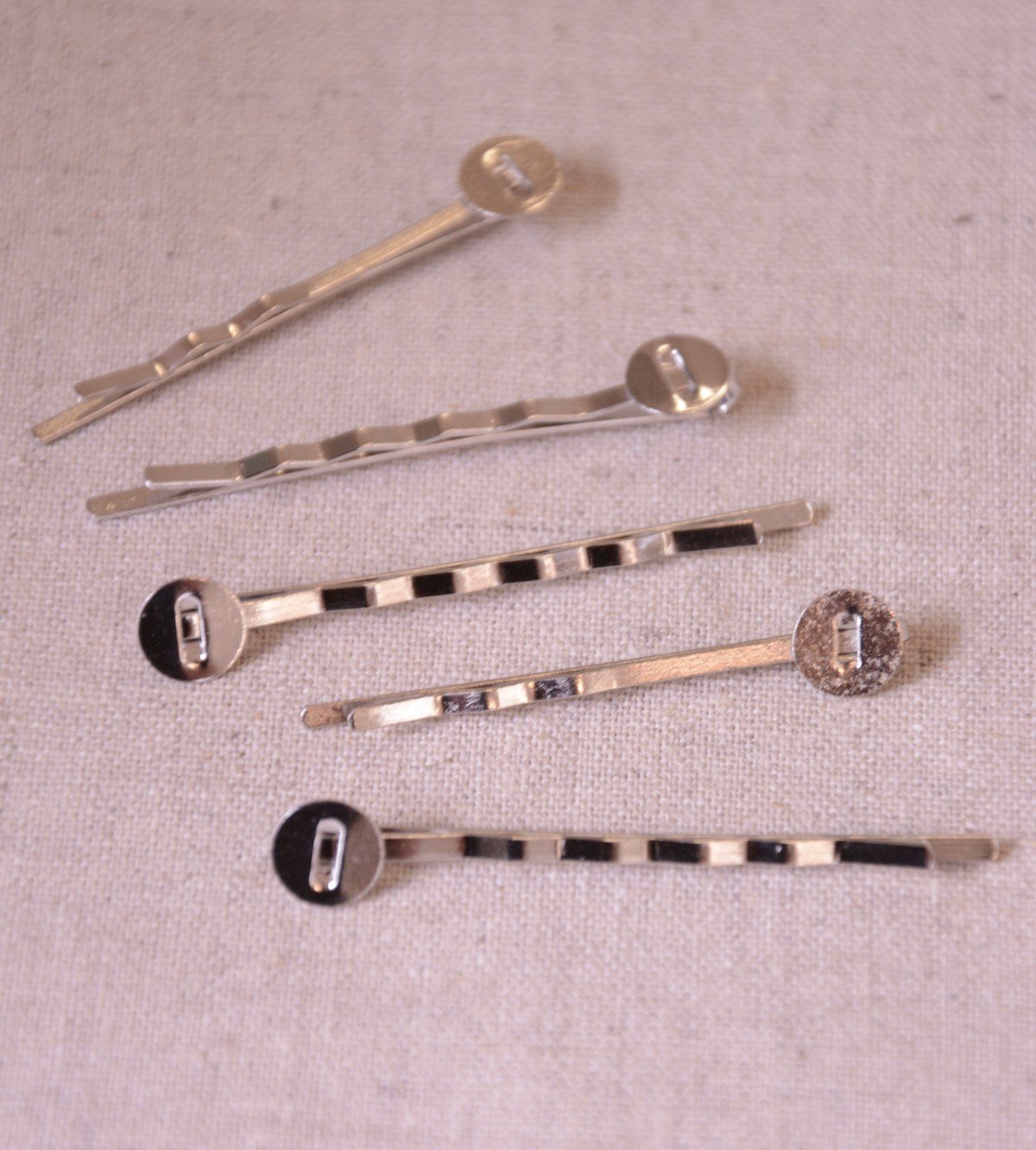 This hairslide blank has a flat disc at the tip which is ideal for glueing onto and customizing!