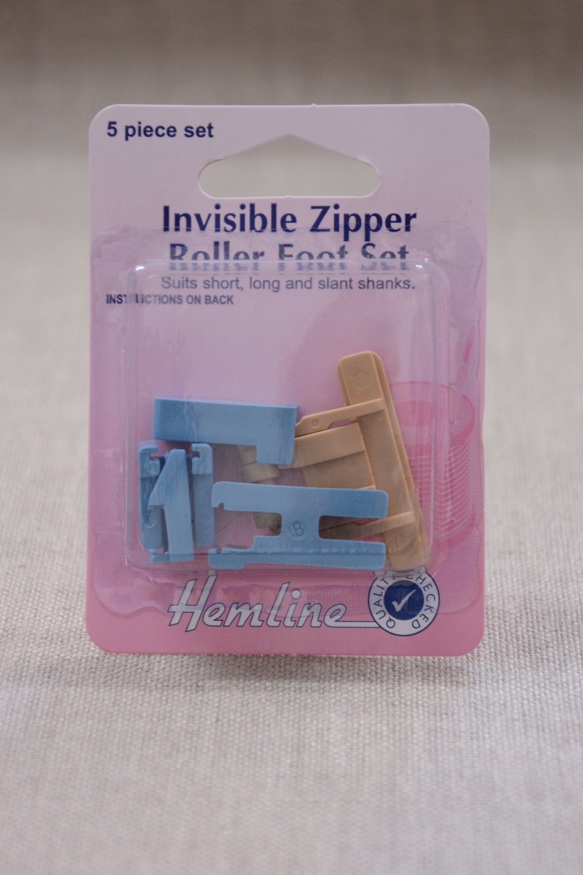 Selection of 5 roller feet for inserting invisible zippers - suits a wide range of sewing machines with low slant, high shank or clip on zipper feet.