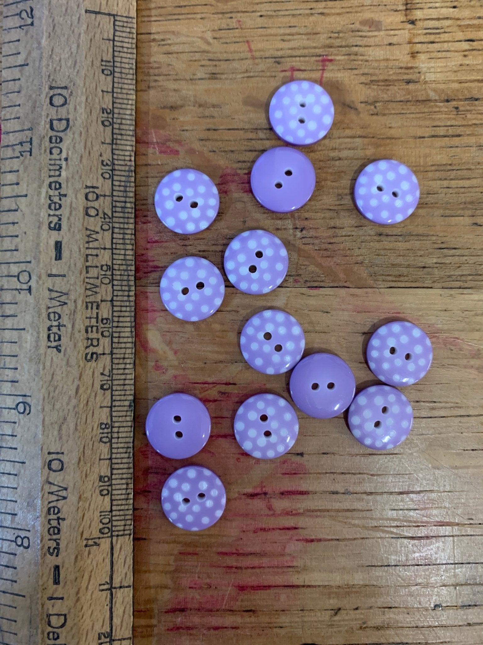 Lilac Spotty Button - 13mm is backordered and will ship as soon as it is back in stock.