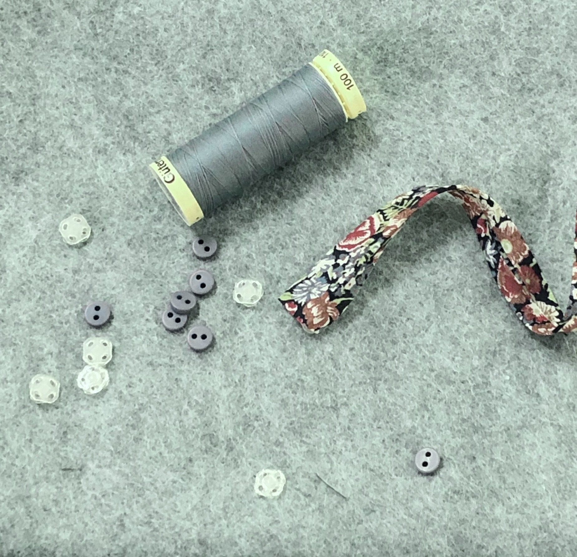 Included is the buttons (x8) felt (x30cm) thread (100m sew all) bias binding (25cm) and even some snap fasteners (x8) if you don’t want to put yourself through making tiny tiny buttonholes!