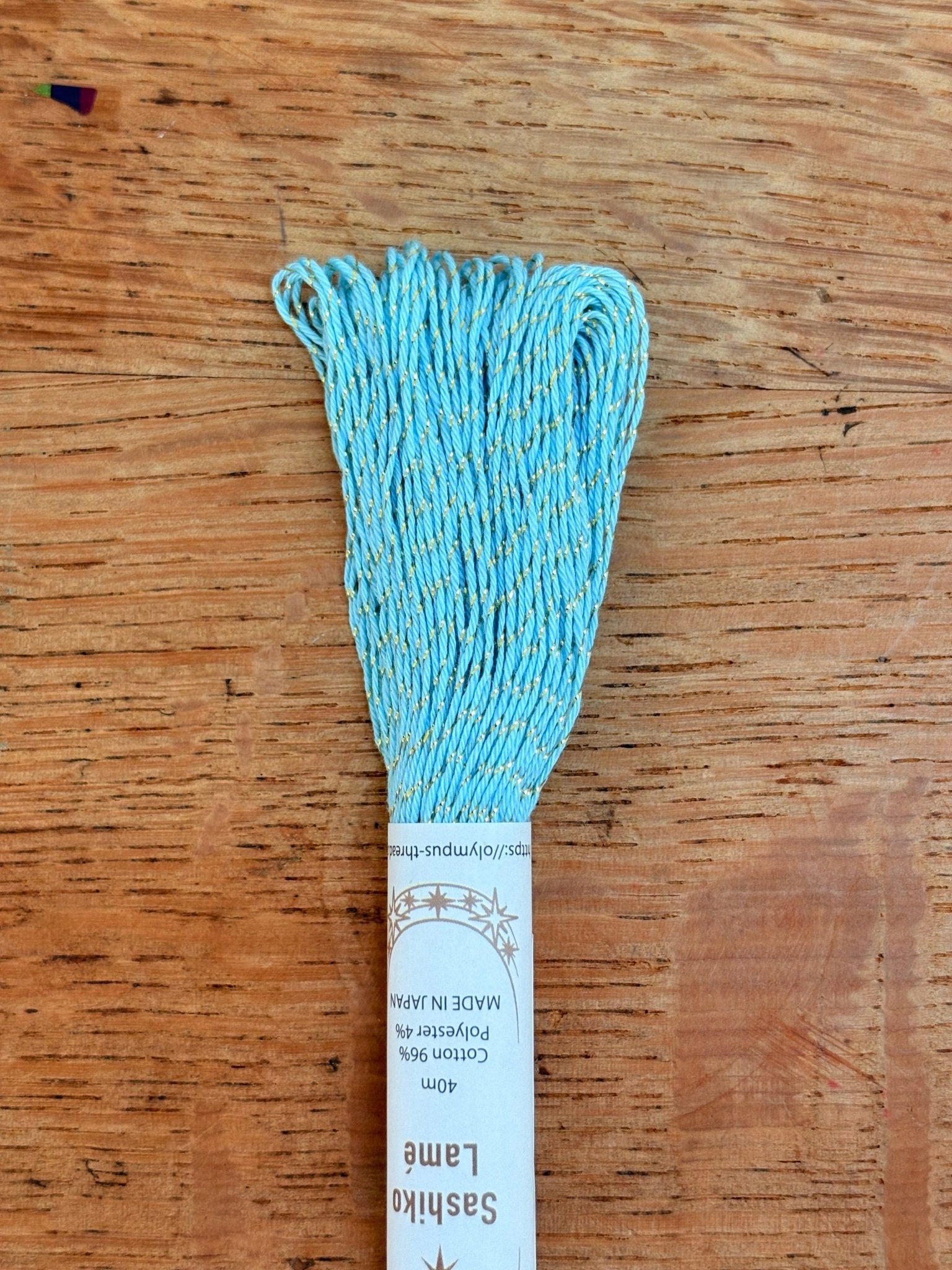 Sashiko Lame is a sashiko thread for those who want to create something a little different from the usual sashiko.  Why not add a little sparkle to your usual sashiko?  The subtle lame sparkle in this thread is not overwhelmingly glittery - it just adds a gentle glint to your work.  This hand sewing thread is single stranded and easy to sew with no shedding or twisting.  Sew up your regular sashiko projects with a little bit of glitter included.