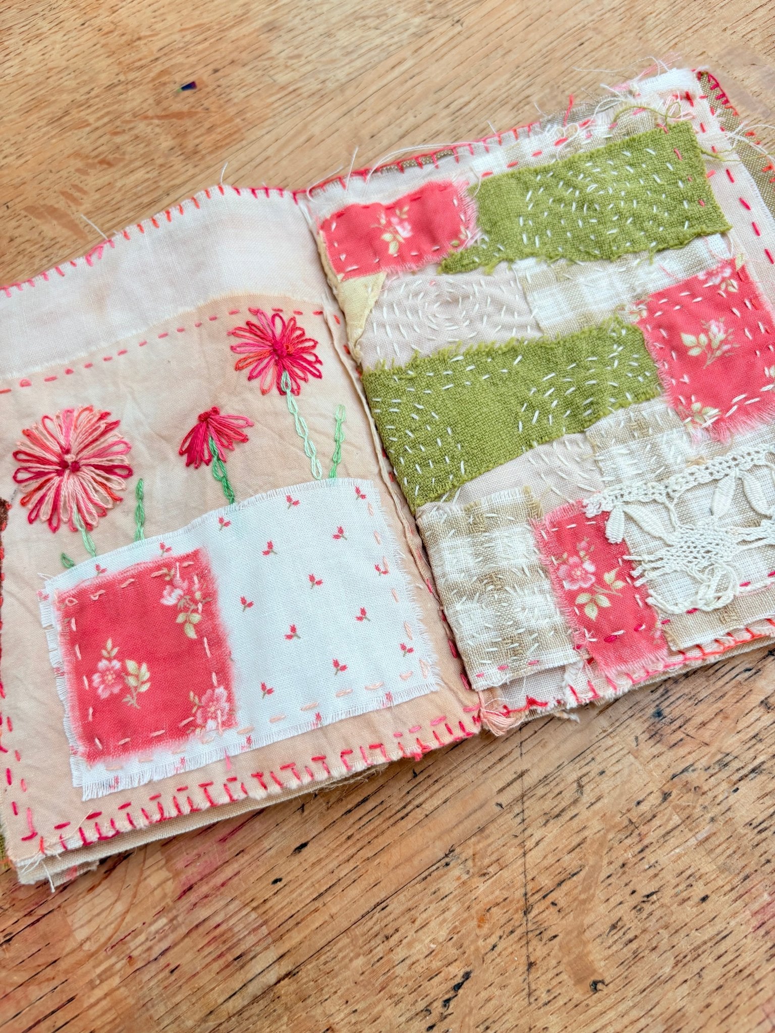Join us for a few joyful hours of creativity, community, and hands-on making as we explore the art of stitched scrap books – a beautiful, sustainable way to turn fabric scraps into one-of-a-kind textile treasures.