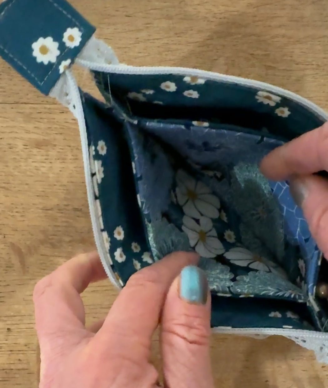 This gorgeous pouch has a hidden twist - an easily constructed pocket hidden inside. It's finished at about 18cm wide. This pouch has perfect insides, no raw edges or exposed seams, and makes a perfect gift!