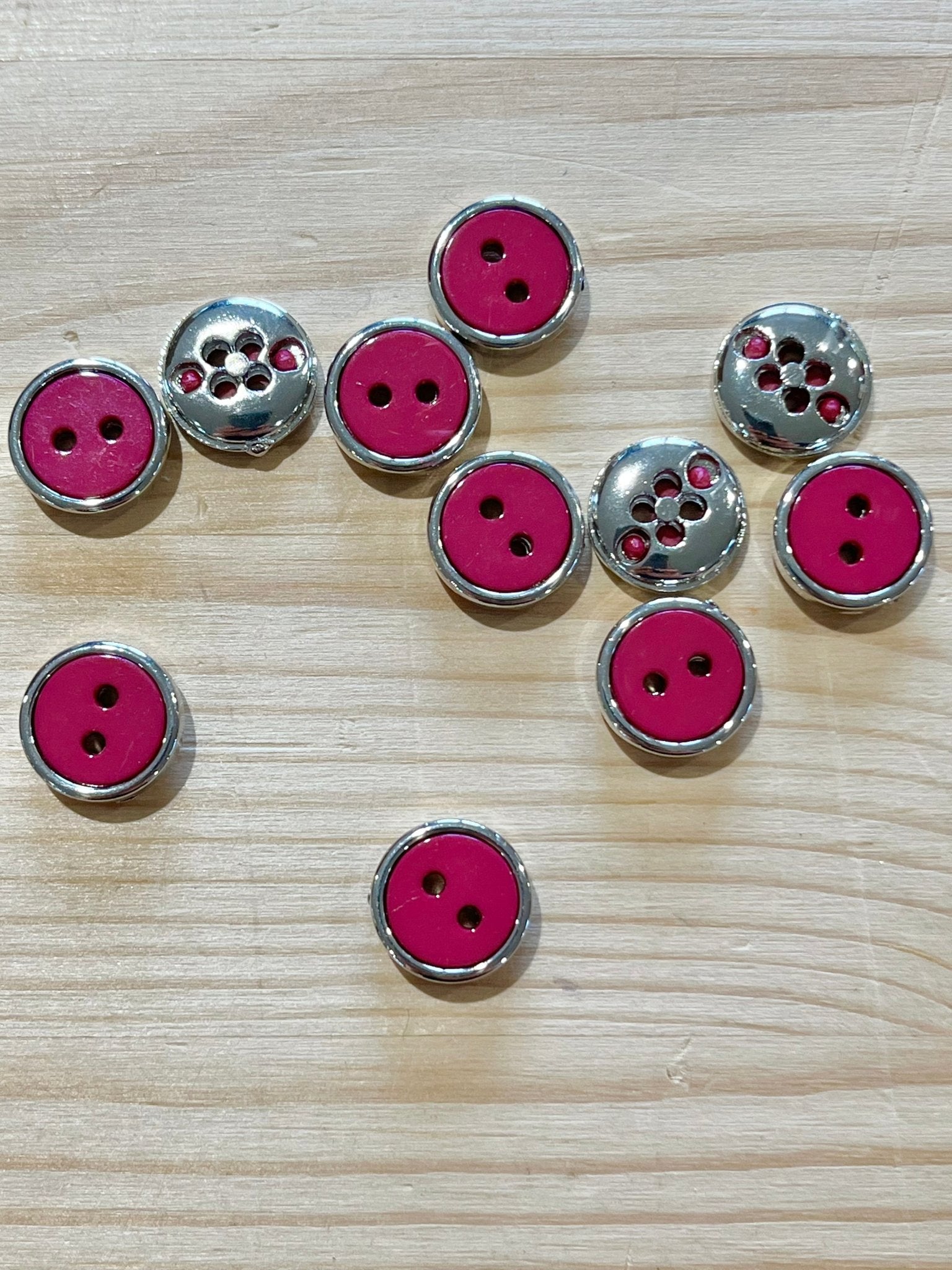 Silver Edged Cerise Pink 2 Hole Buttons - 12mm is backordered and will ship as soon as it is back in stock.
