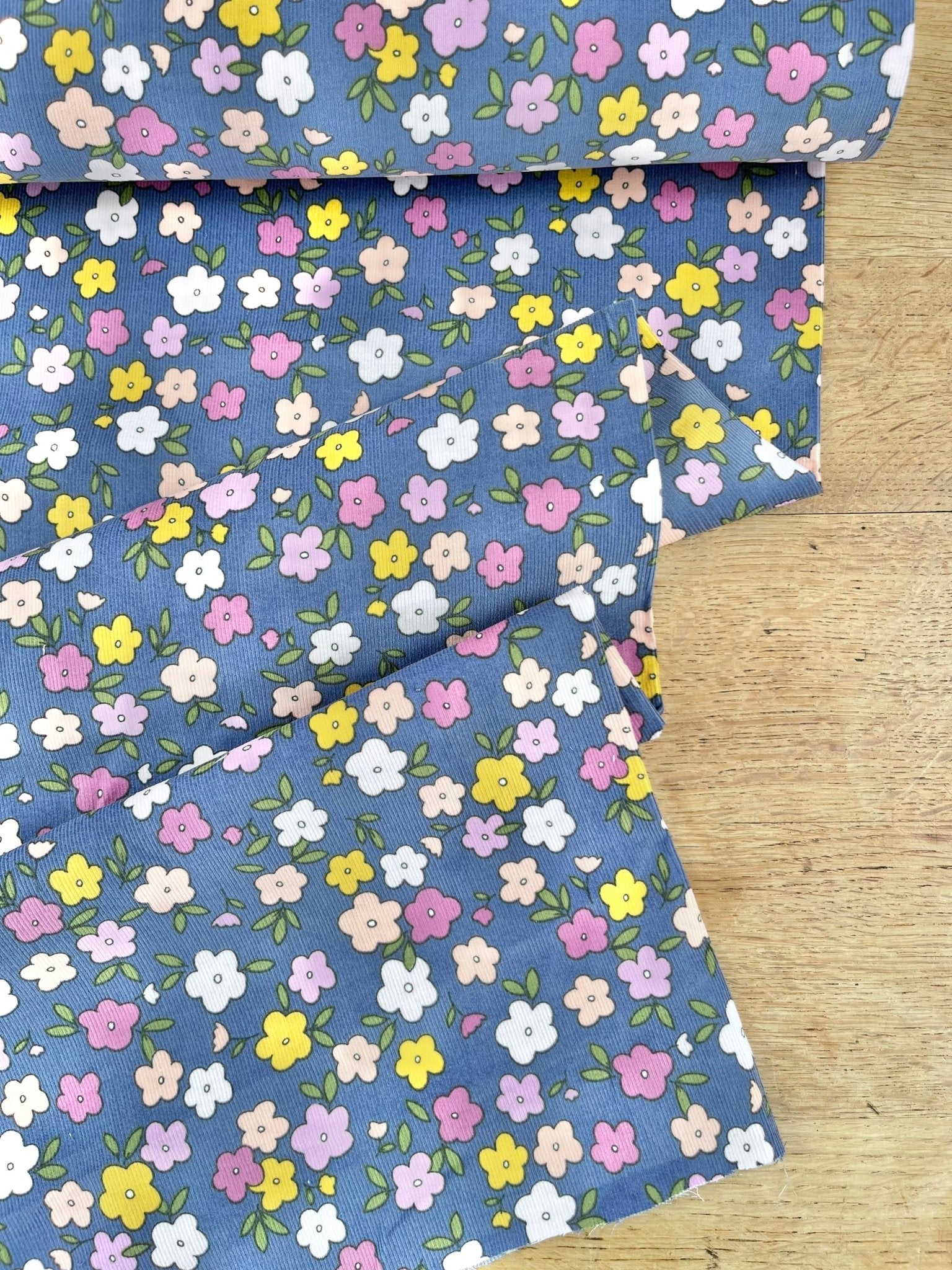 Remnant 50cm x 145cm - Small Flowers on Blue Needlecord is backordered and will ship as soon as it is back in stock.
