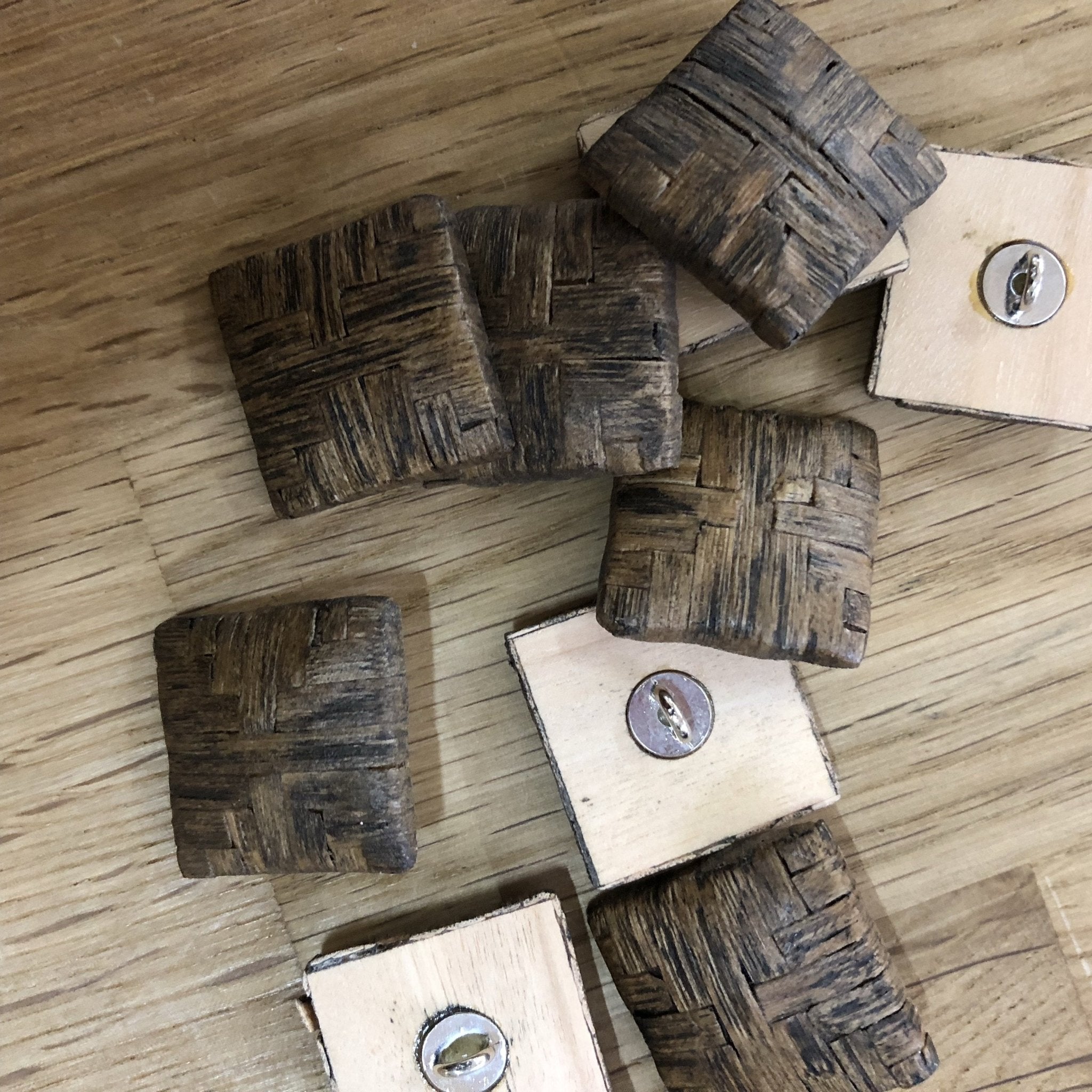 These are lovely square buttons each edge measures 21mm, they have a natural layered wooden veneer on a wooden base. With a shank fitting on the back - price is per button.