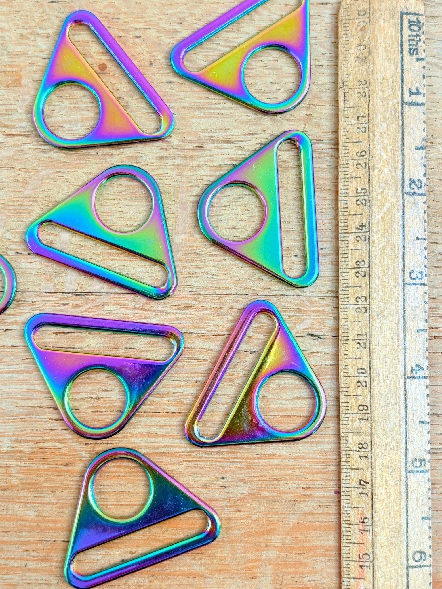 This rainbow metallic hardware goes so well with our Two Stitches Webbing!