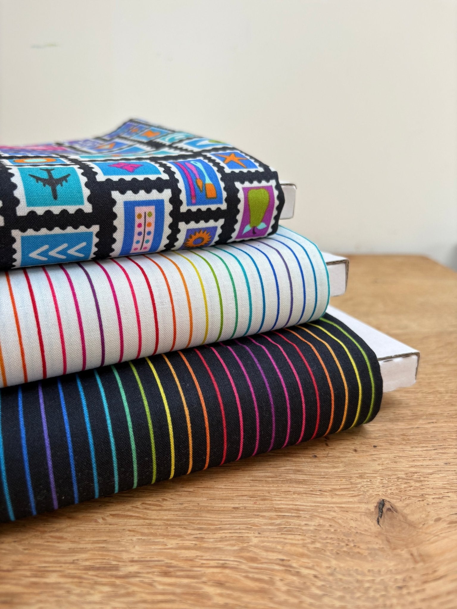 We always love to welcome an Alison Glass collection to the shop, and this one doesn't disappoint. This stripe is perfect for multicoloured bindings and so much more.