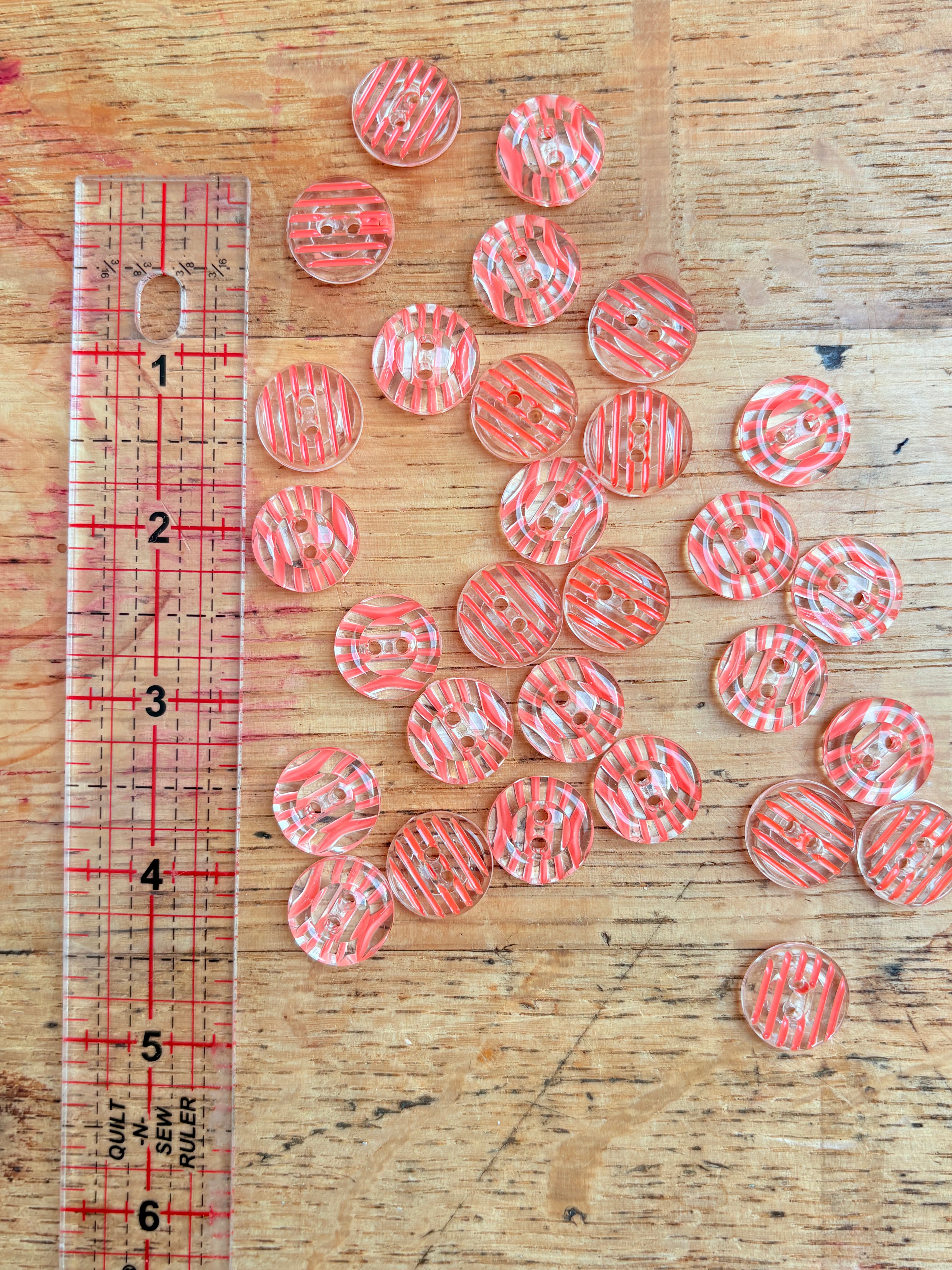 Clear Stripe Jelly Button - Coral - 15mm is backordered and will ship as soon as it is back in stock.