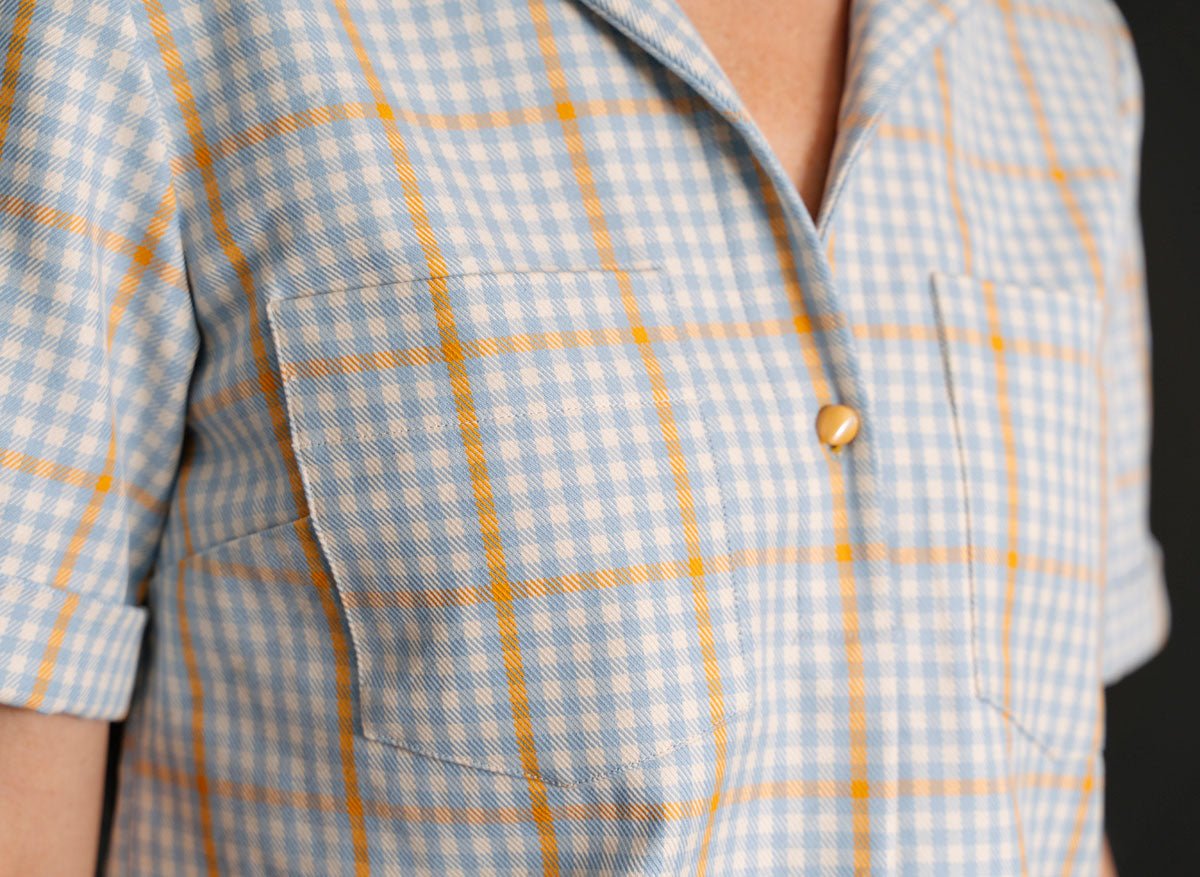 Buy the Havana Pajamas sewing pattern from Liesl + Co. These popover-style pyjamas look like the classic button-down version, but the buttons stop halfway down so the top stays closed without the uncomfortable buttons. The top features a convertible camp collar, two front pockets, a back yoke with an inverted box pleat, side vents, and cup sizes. Choose long sleeves (View A) or short sleeves (View B), both with a foldable cuff. The bottoms have front pockets, an elastic waist, and can be sewn either as trousers (View A) or shorts (View B), both with cuffed hems.