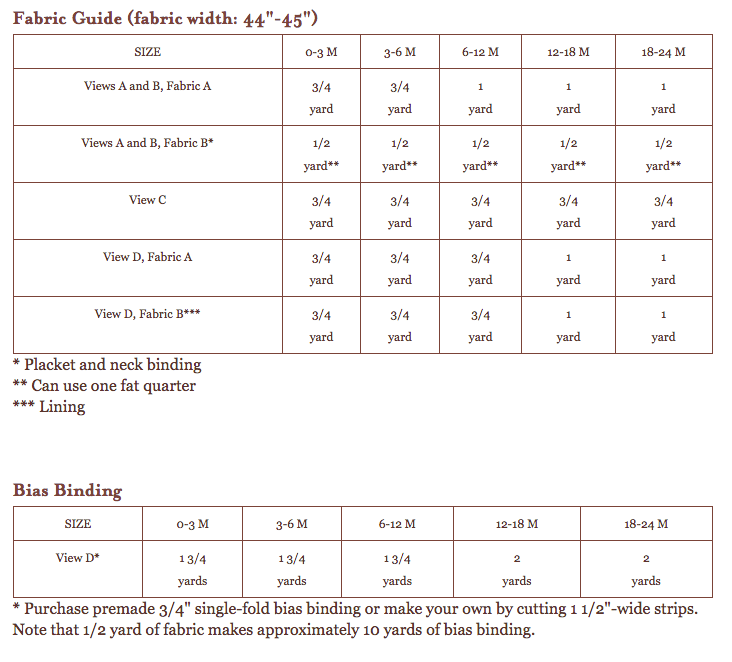 Light- to medium-weight woven fabrics like quilting cotton, voile, lawn, shirting, poplin, broadcloth, and linen. You can also use knits for the main fabrics, but we recommend lightweight woven fabrics for the bodysuit placket and bias binding and for the jacket bias binding.
