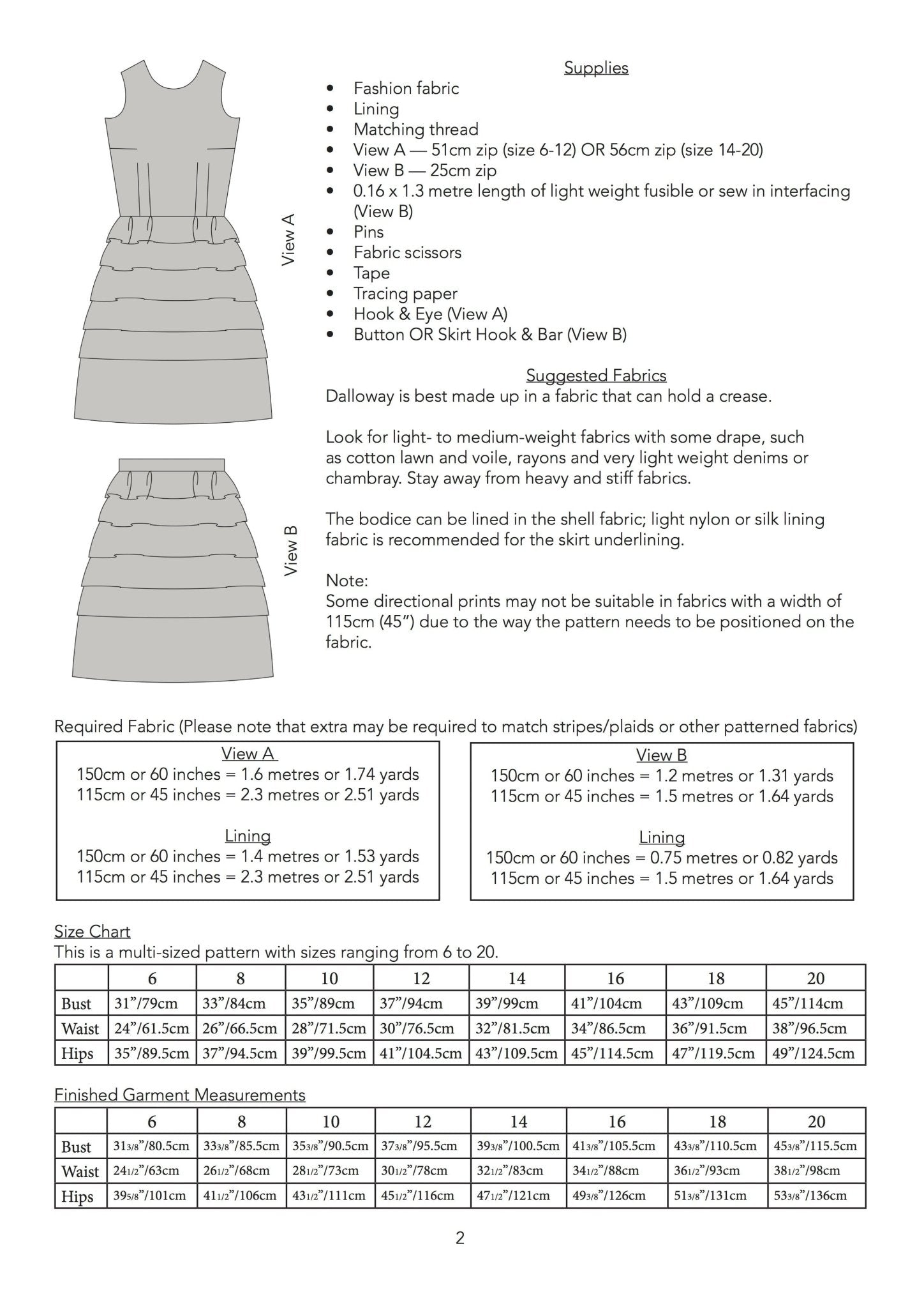The Dalloway Dress is constructed with a fully lined and enclosed bodice to hide away raw edges. The skirt underlining can also act as a lining, leaving you free to wear it without a slip when the cold weather strikes and both versions are finished with a lapped zip.