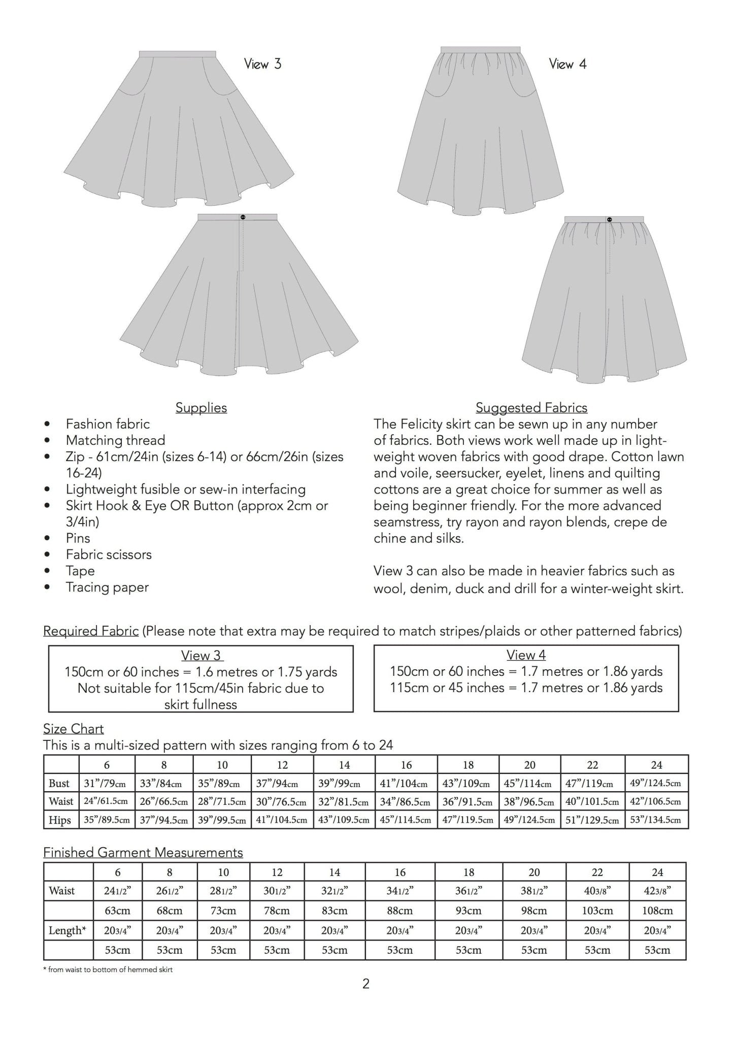 Now with a Skirt Pattern Expansion pack included!! Get even more out of your Felicity Dress Pattern with the option of turing your dress into a skirt. Go for either the full circle skirt, or try the gathered version. Both have the ever important all in one pocket. Perfect for everyday wear, pair your Felicity Skirt with your Bronte top for a complete handmade outfit.
