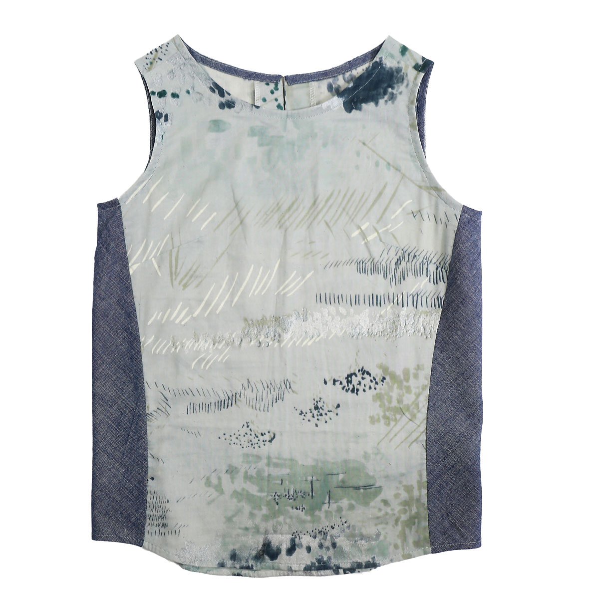 This easy-to-sew and easy-to-wear pull-on, loose-fitting, sleeveless blouse features a keyhole back opening, side panels to provide a contrast fabric option, darts for shaping, and separate pattern pieces for A/B, C, and D cups to enhance fit. The pattern eliminates side seams for a fun and unusual take on a slightly boxy top, and it has a gentle shaped hem and bias facings at the neck and arms.