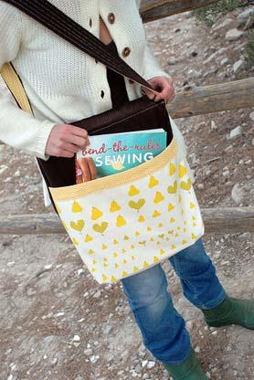 What kinds of goodies do you carry? Whatever your treasures, the Messenger Bag is your trove. Featuring a large rear pocket for magazines and books, two front pockets for easy access, and a generously-sized zipper pocket on the inside, this bag will be your trusty companion on all your daily adventures. Finished bag measures 13" x 15".