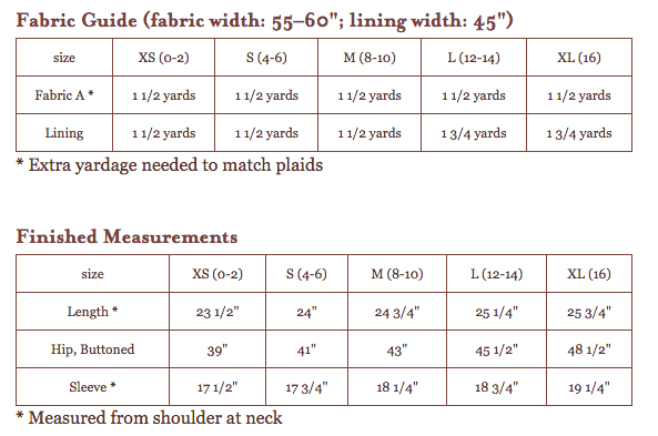 Notions Lightweight fusible interfacing, coordinating thread, five 1" buttons and/or five snaps.
