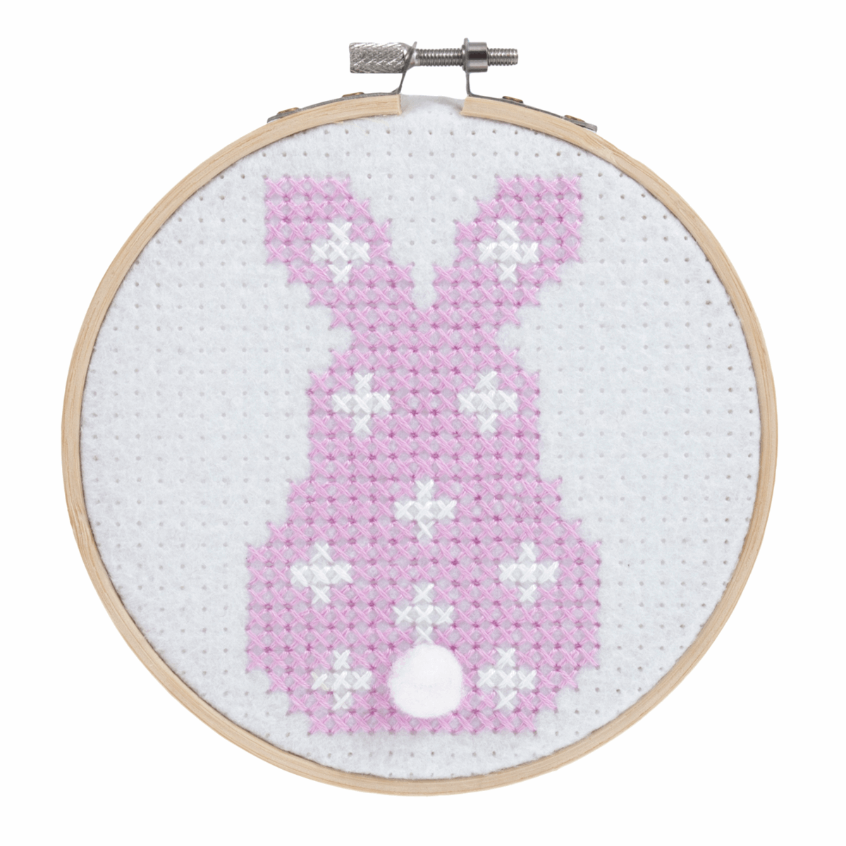Perfect for beginners, these cross stitch hoop kits are worked on 6 count hole punch polyester felt sheets with polycotton threads. Each kit includes felt, threads, a needle, instructions and a wooden hoop for displaying the finished piece. Finished size: 13 x 13cm.