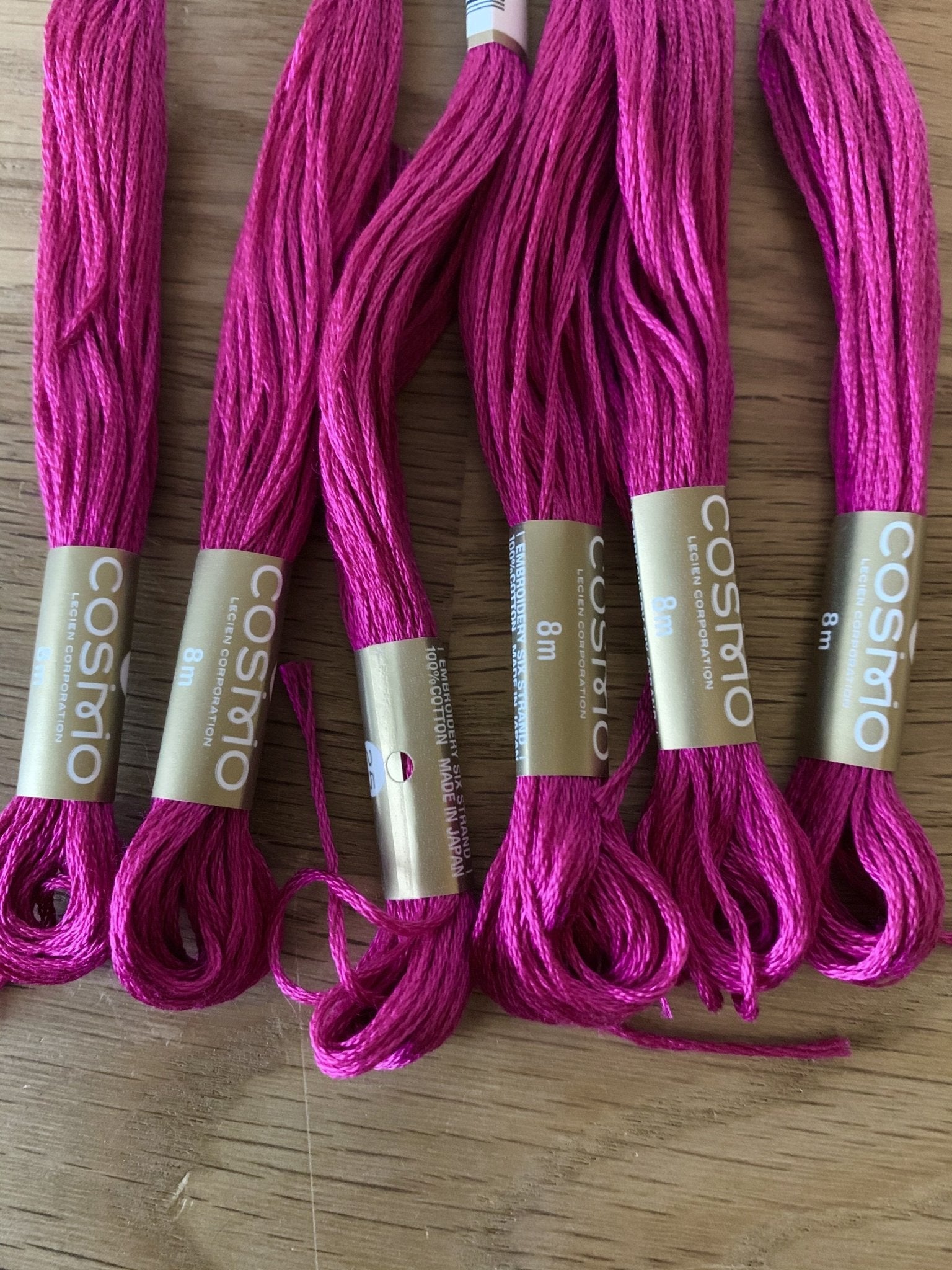 The vivid silky shine of COSMO Embroidery thread brings out a brighter and eye-catching colour.  The colours all resist fading and discolouring due to the advanced craftsmanship of COSMOs special processing techniques.  COSMO is known for the vividity of it's colours, and the beautiful nuances of it's colour palette.