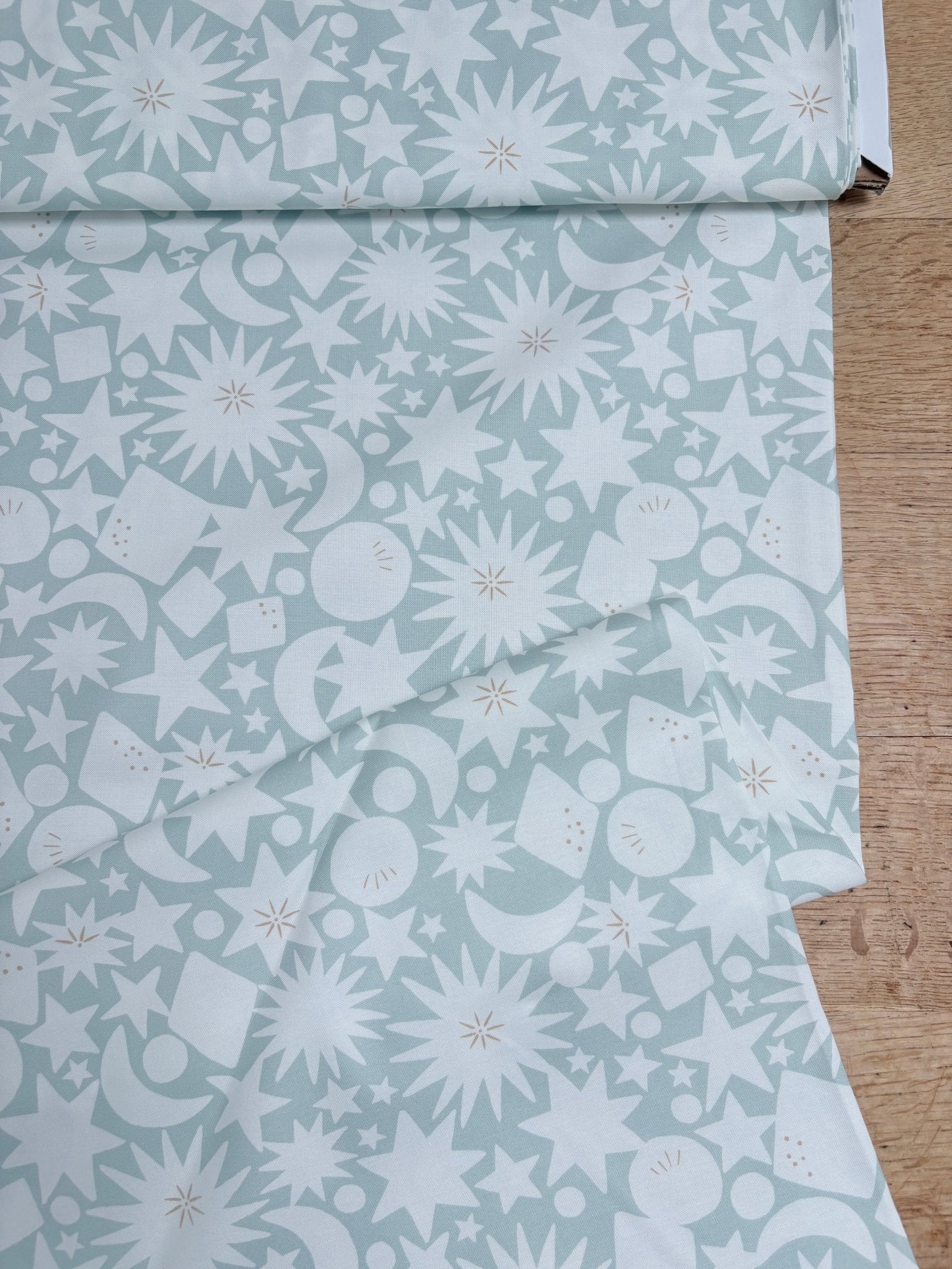 Block Moon and Stars in Mint - To The Moon and Back - Paper + Cloth for Moda Quilt Cotton Fabric
