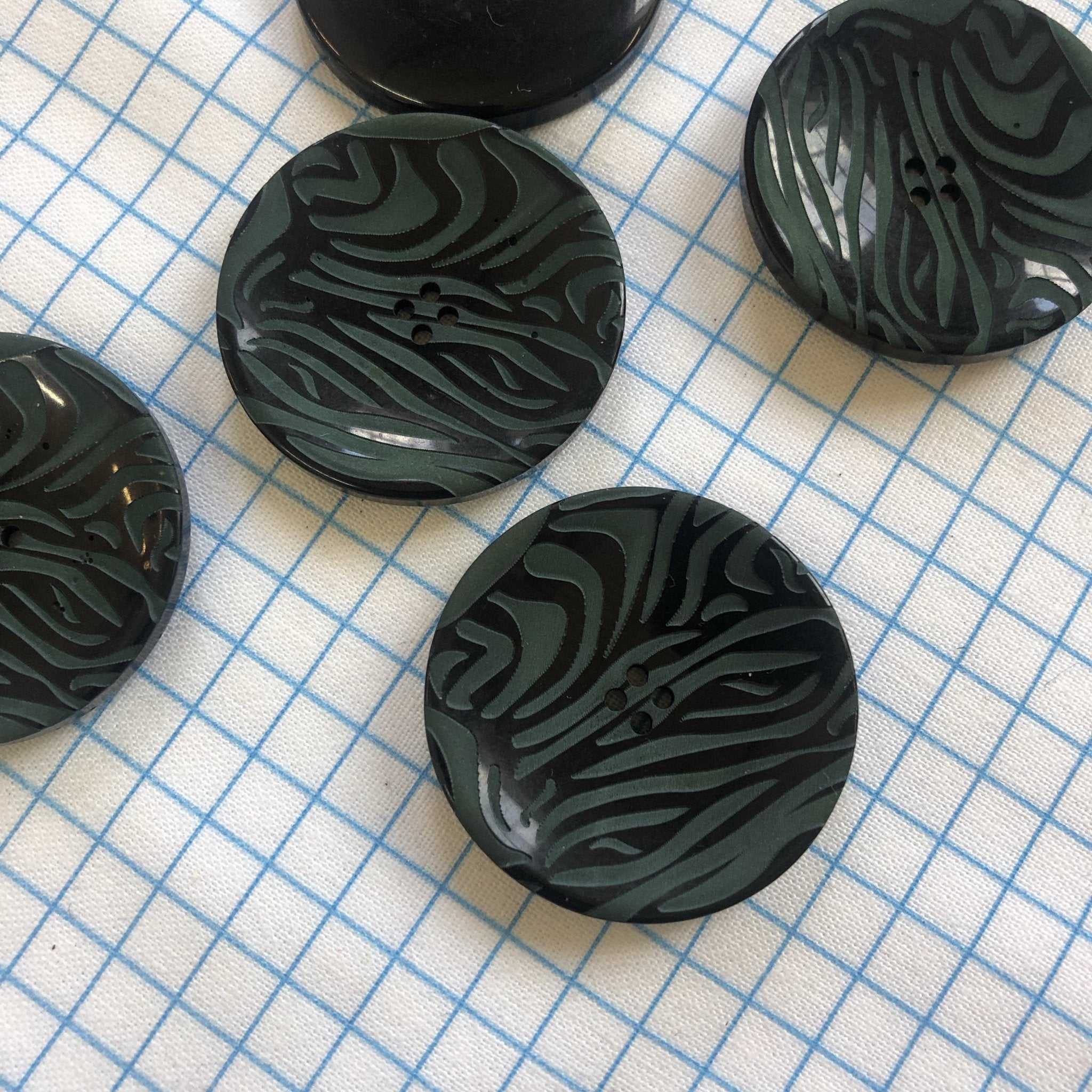 Etched Zebra Button - 4 Hole - 34mm - Green is backordered and will ship as soon as it is back in stock.