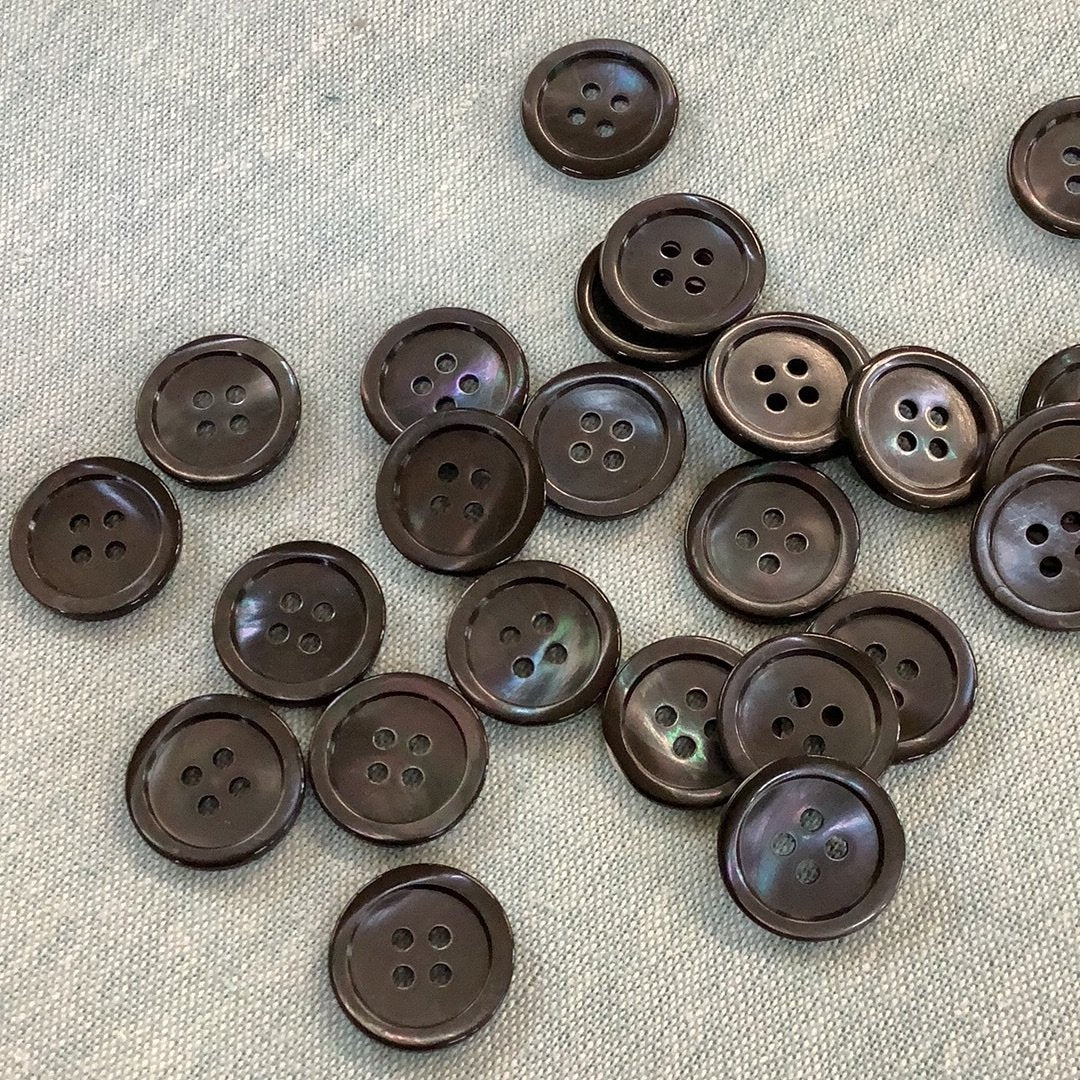 Dark Smoke Mother of Pearl Narrow Ring Edge Button - 18mm is backordered and will ship as soon as it is back in stock.