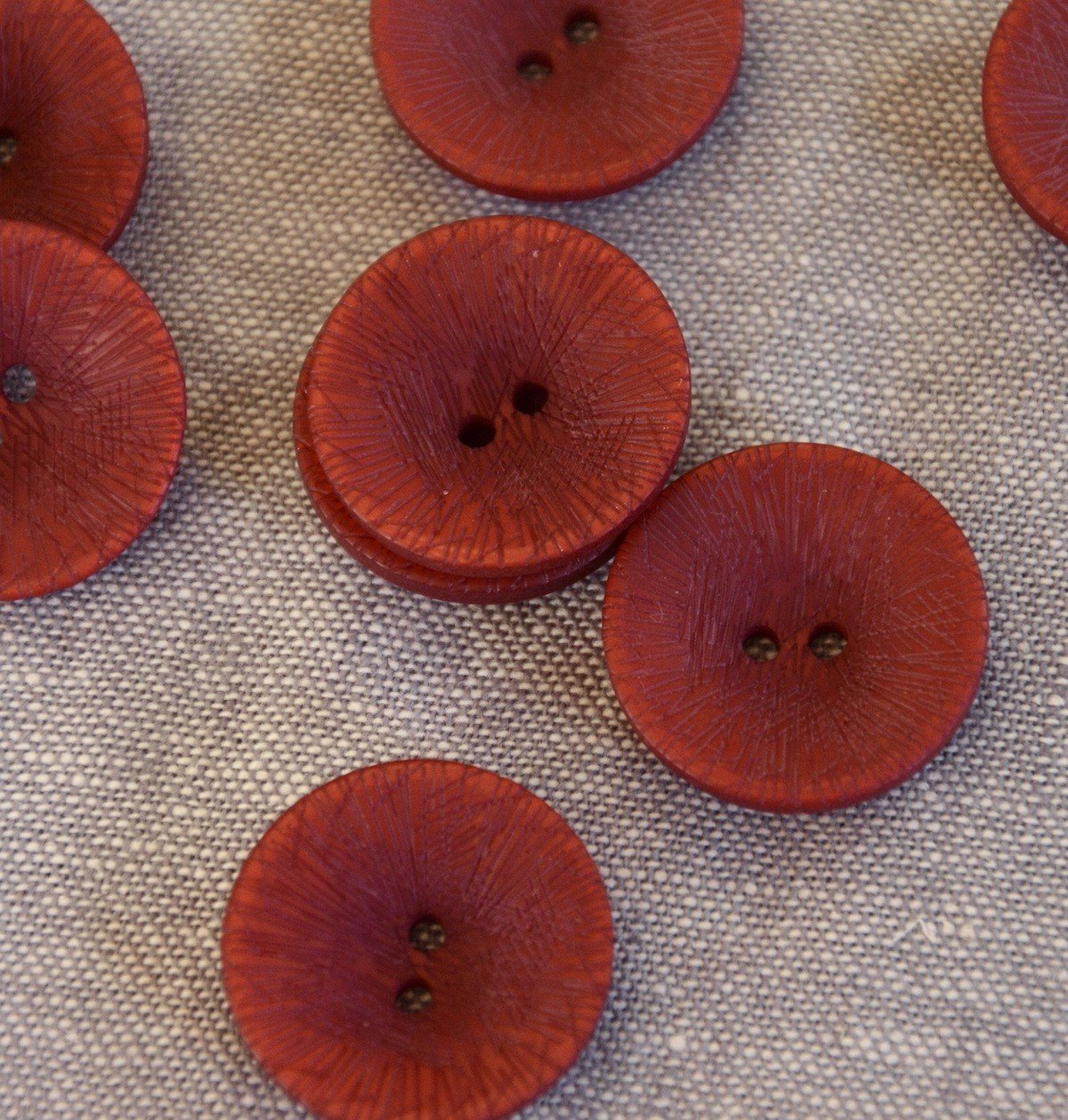 Etched Lines Button - 24mm - Burnt Red is backordered and will ship as soon as it is back in stock.