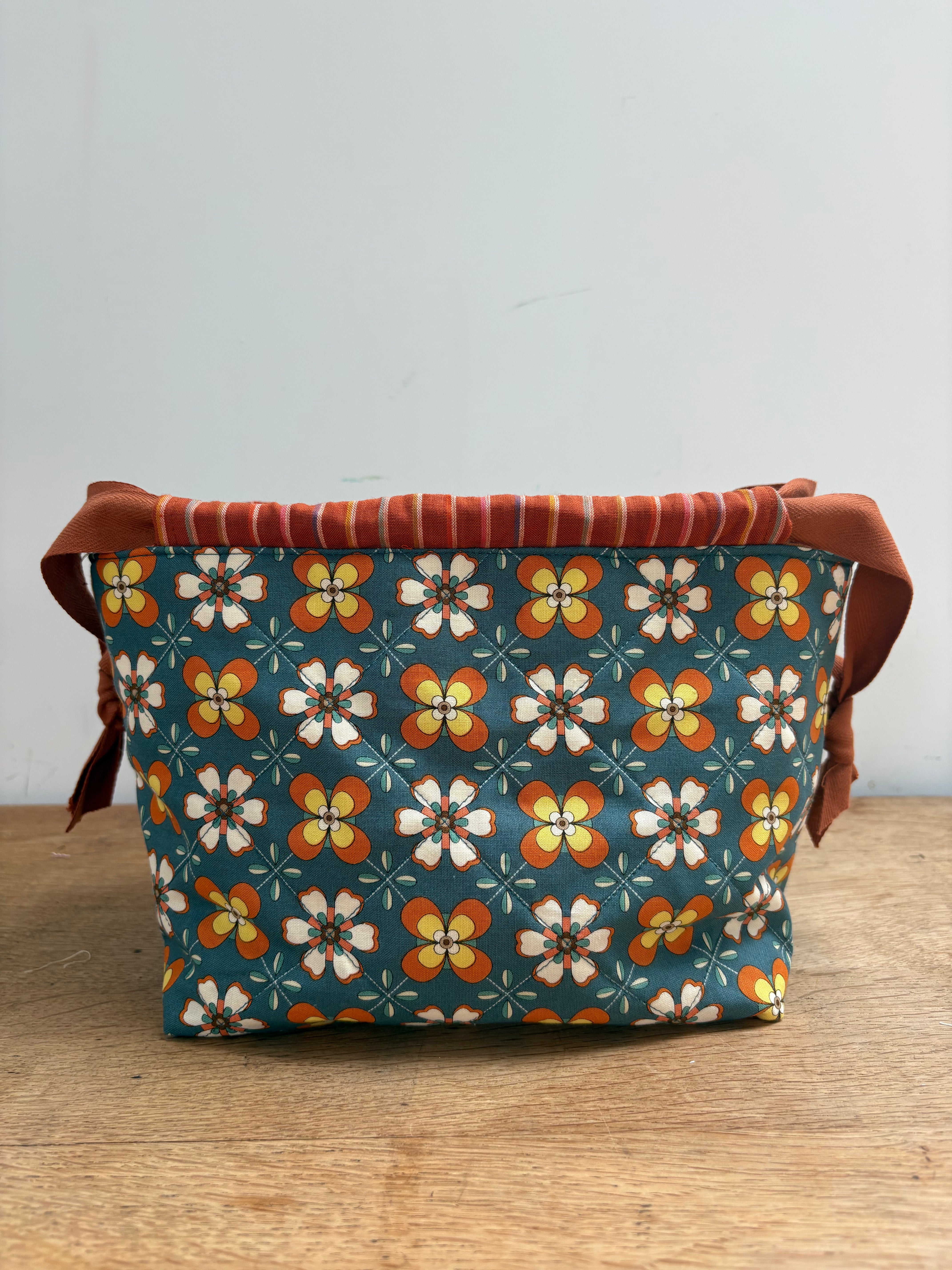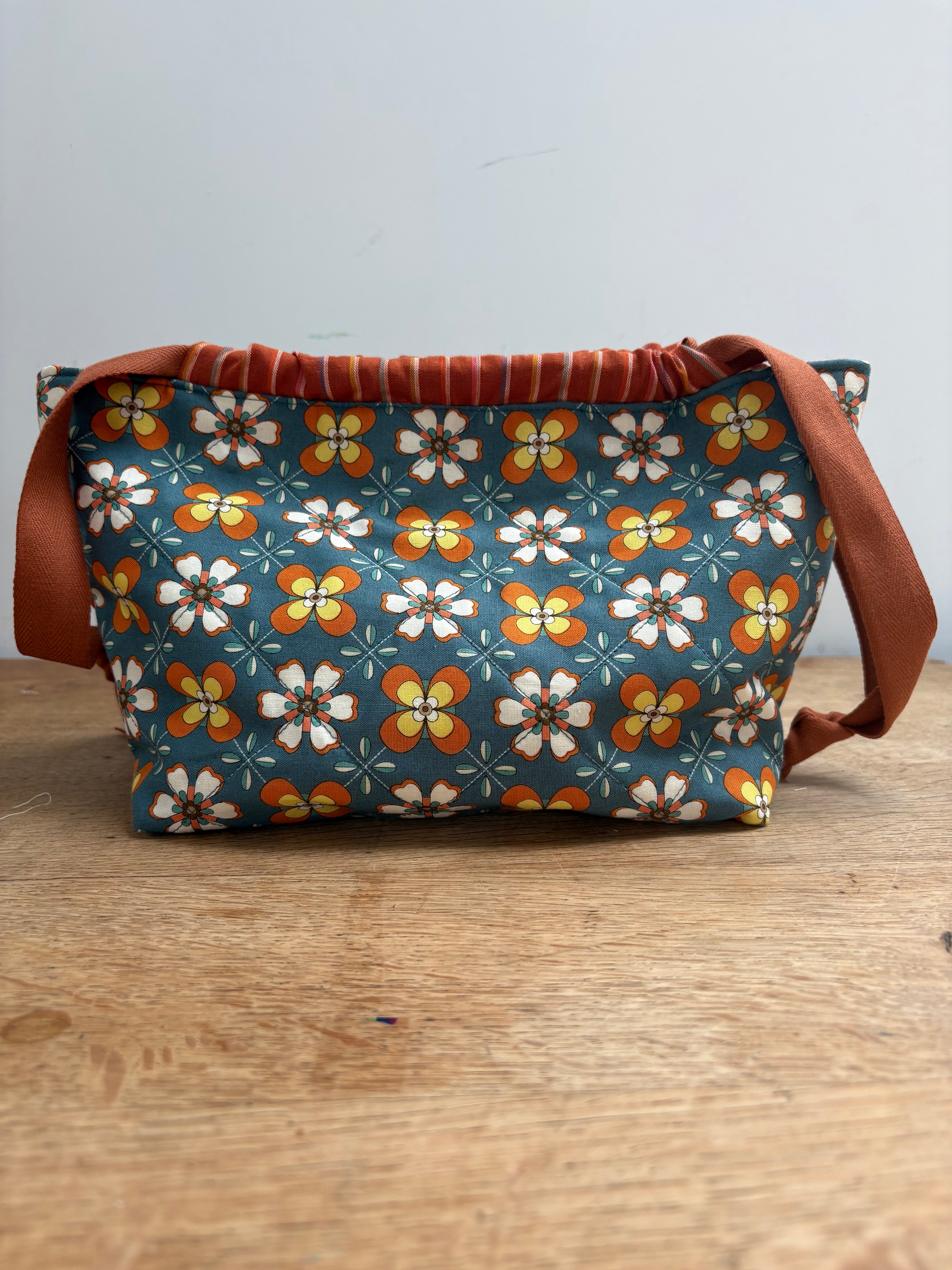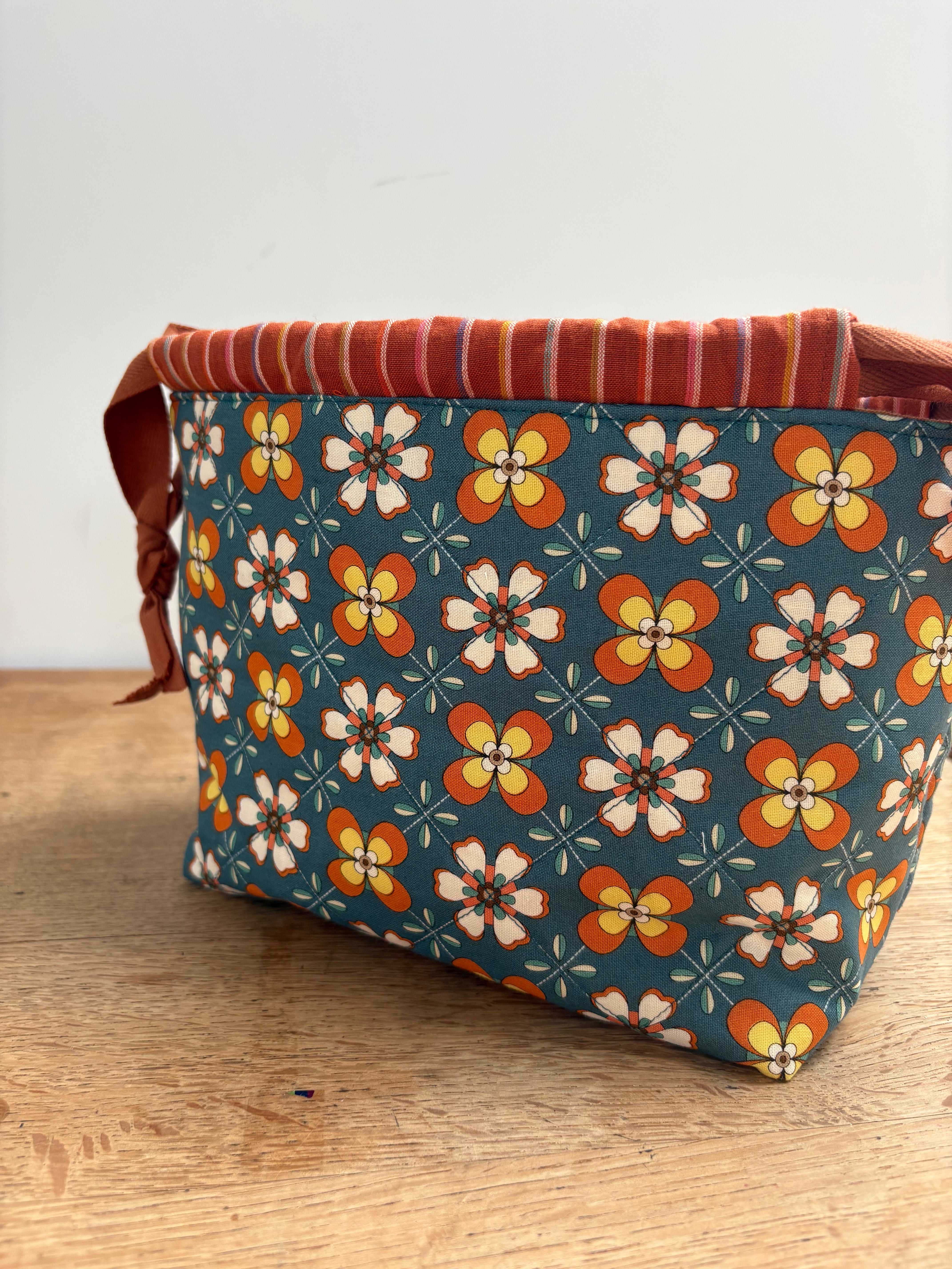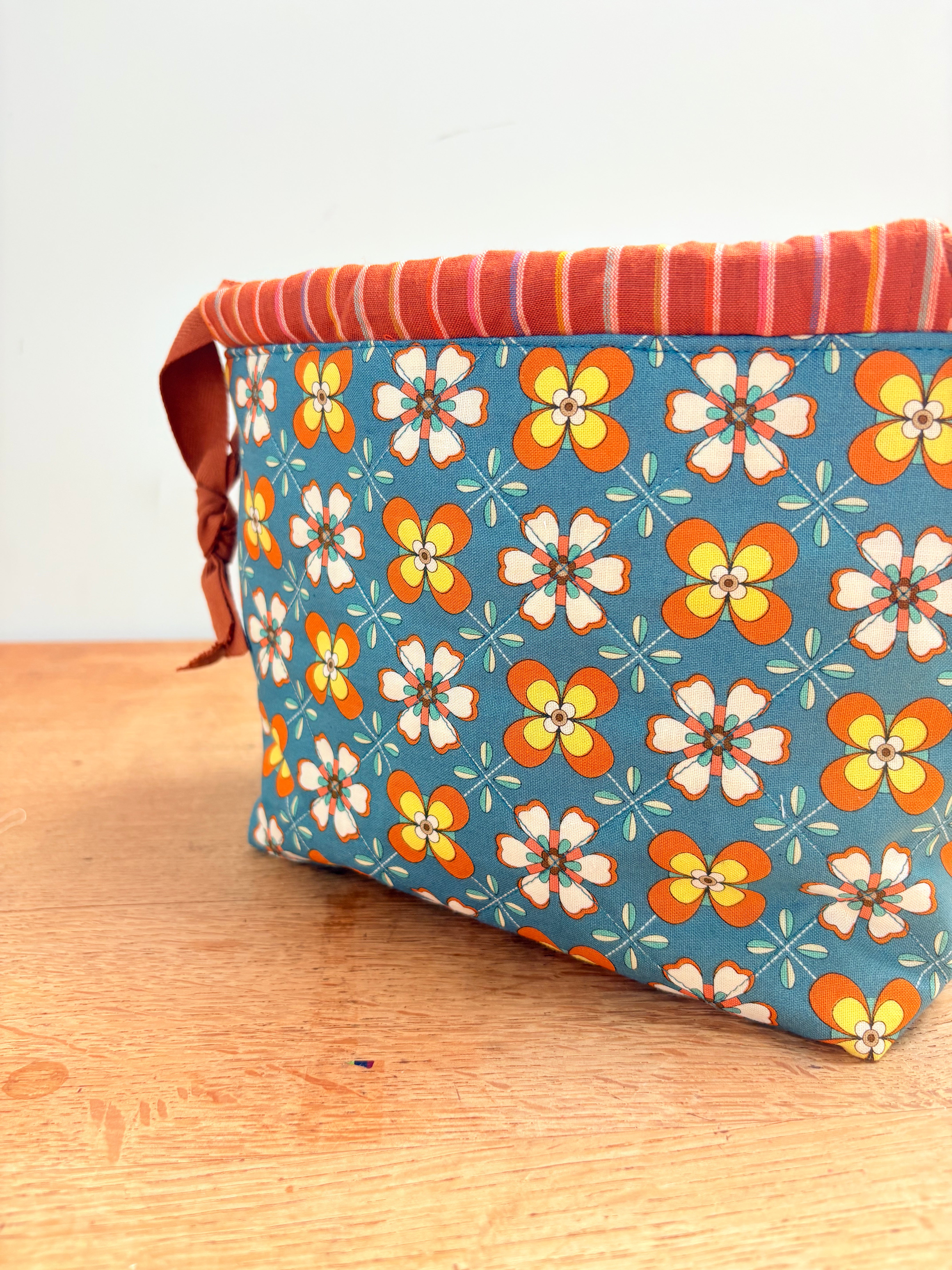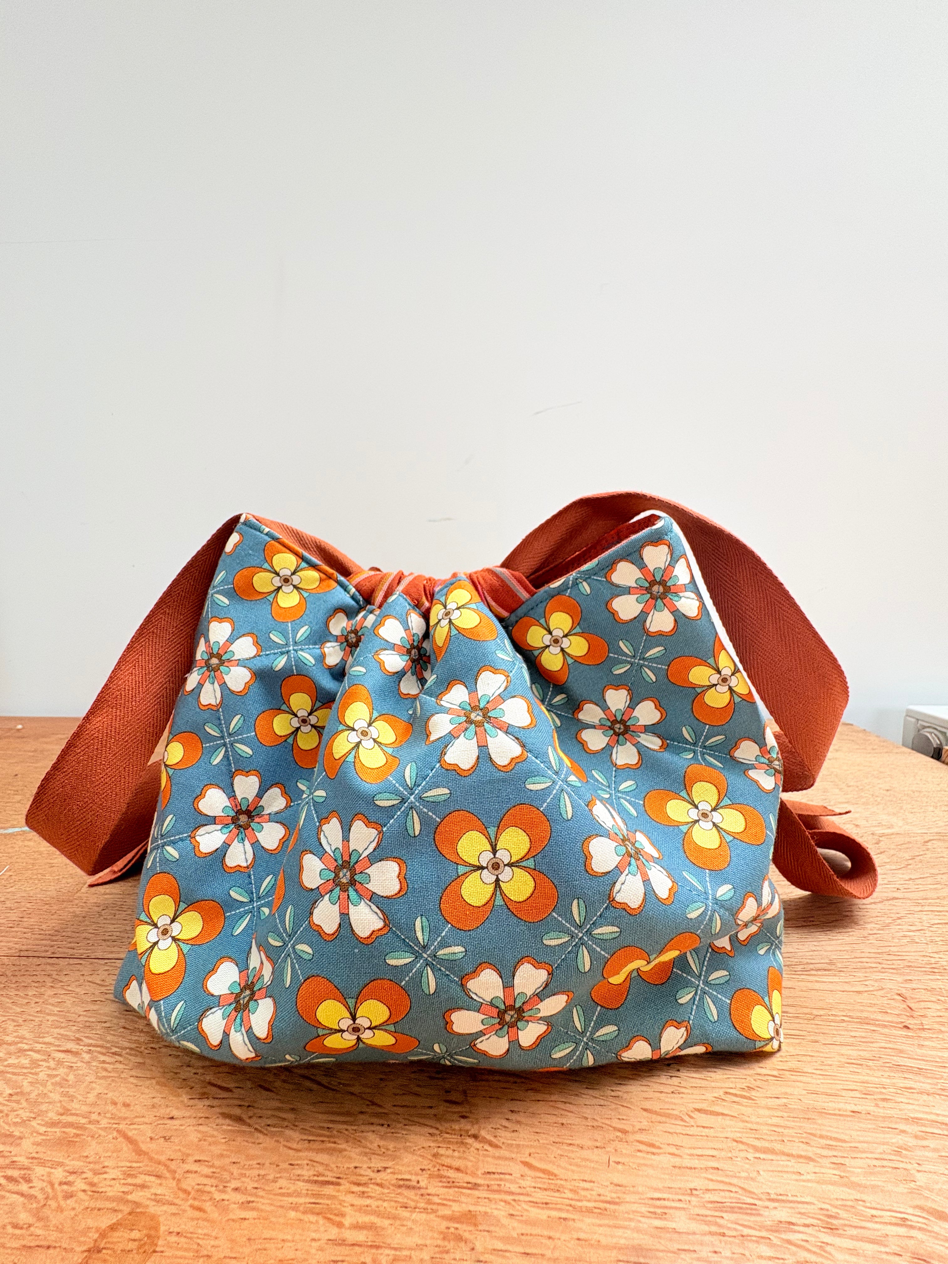 Quilted Drawstring Pouch - Sewing Kit - Teal Retro is backordered and will ship as soon as it is back in stock.
