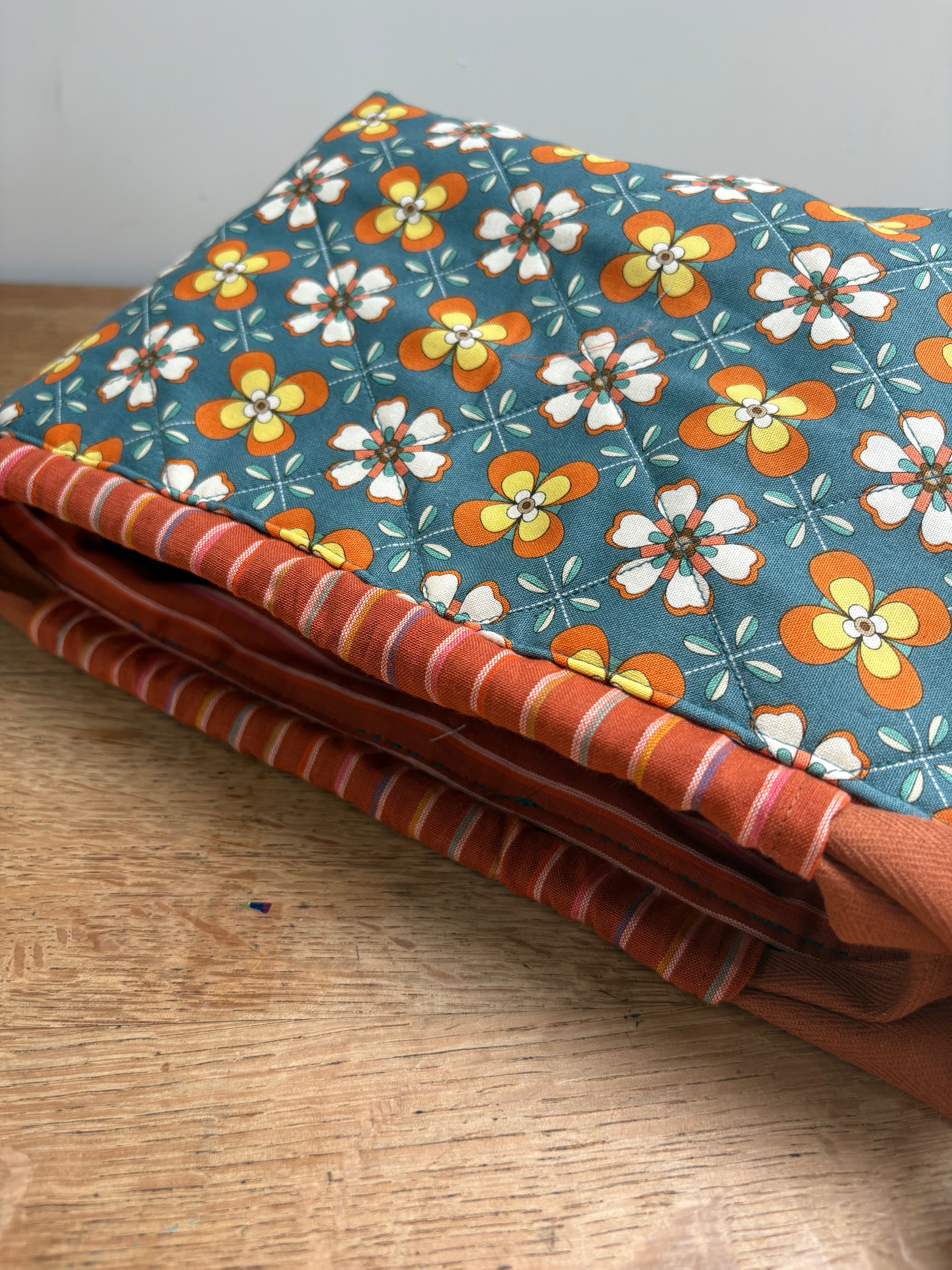 This is a kit for this quilted drawstring pouch with a sewing themed fabric, finished at approximately 25cm x 20cm.