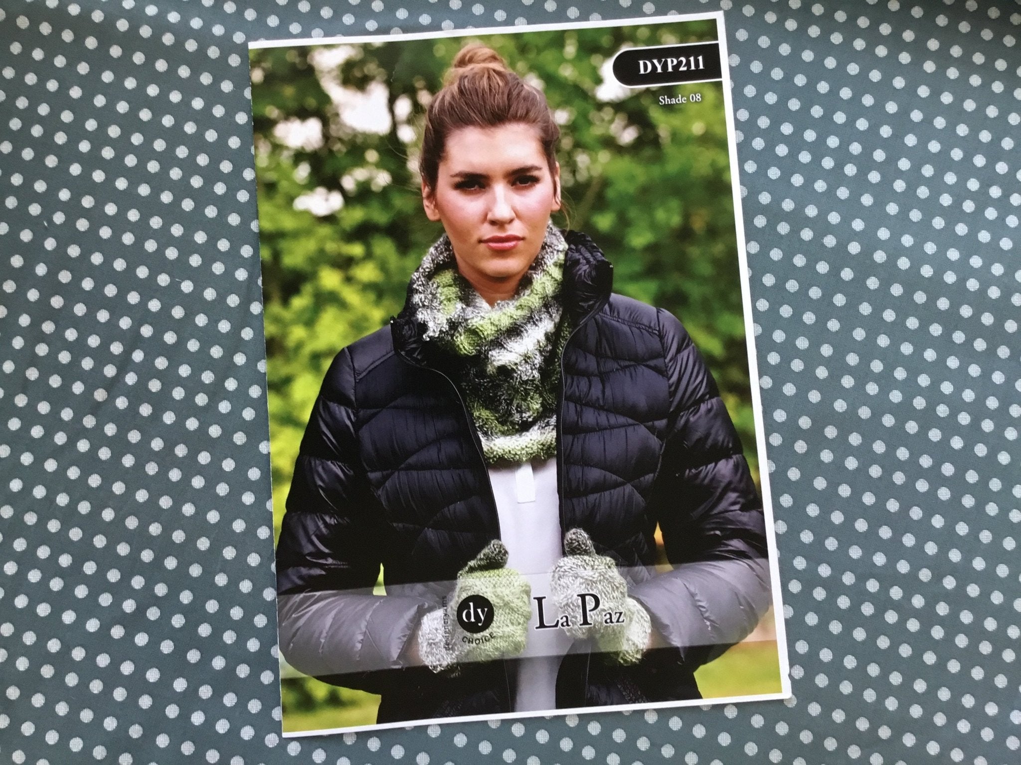 You will need 1 x 100g balls of Designer Yarns “La Paz” yarn (or equivalent) to make the mittens and 2 x 100g balls to make the cowl.