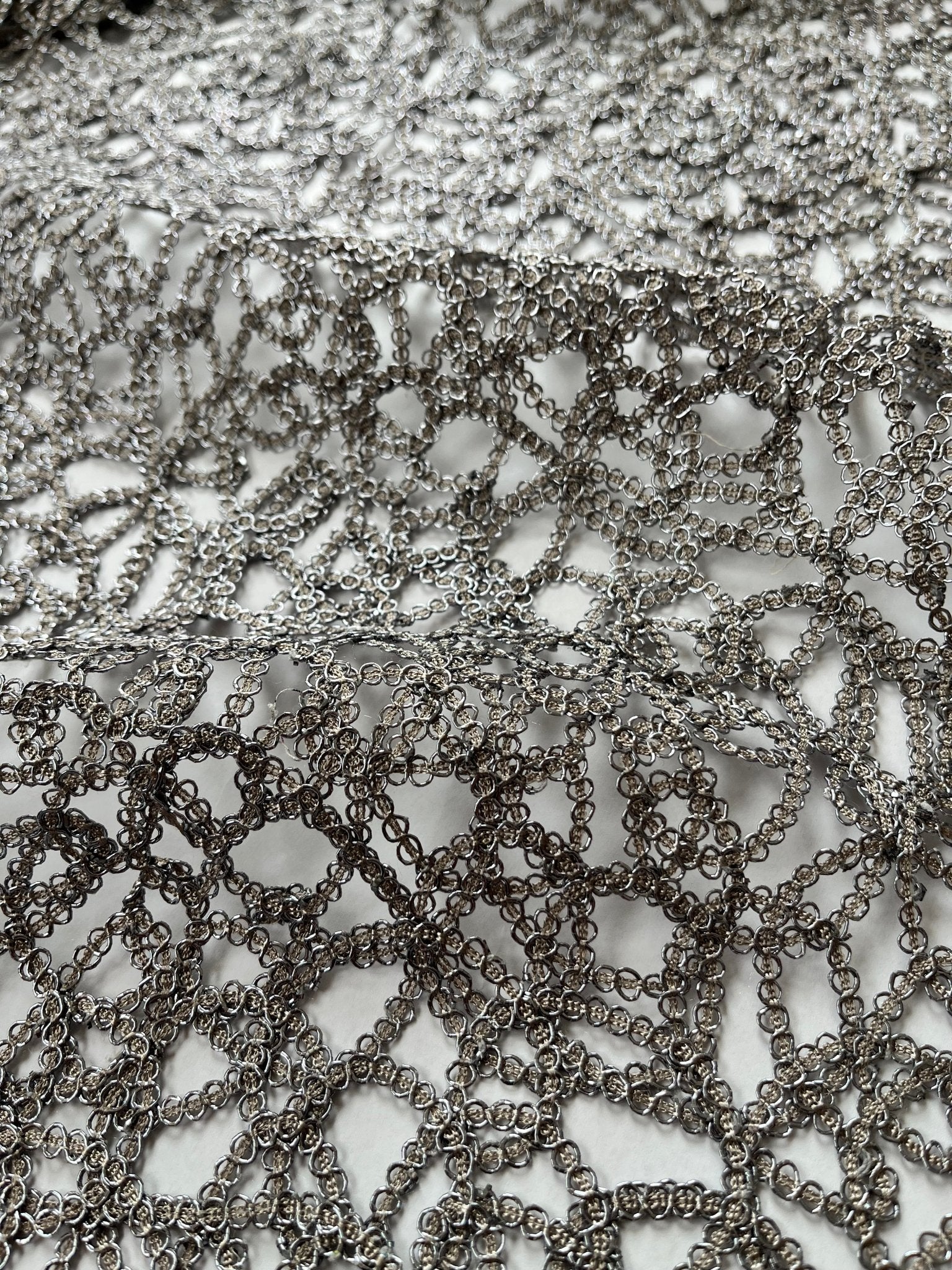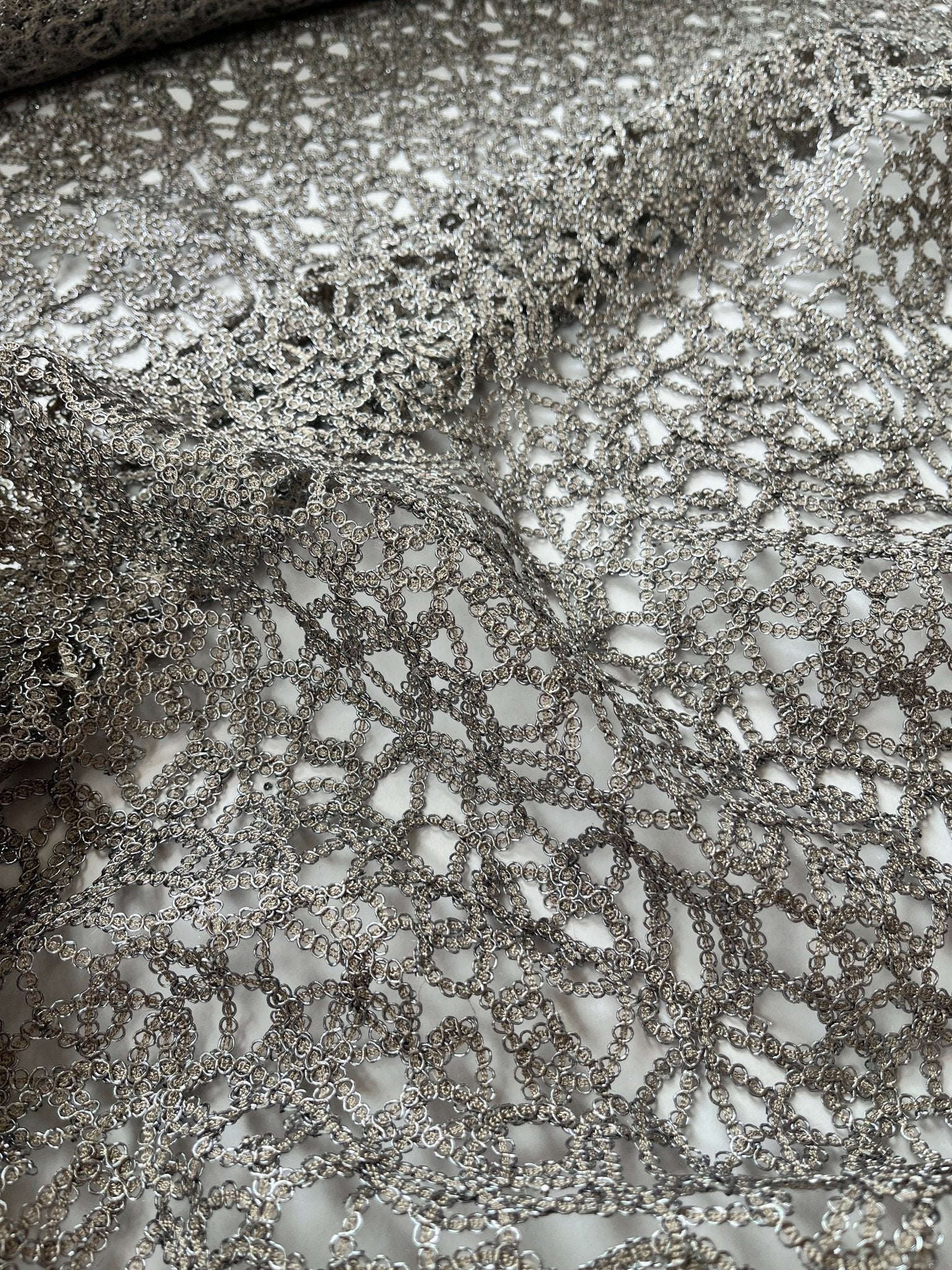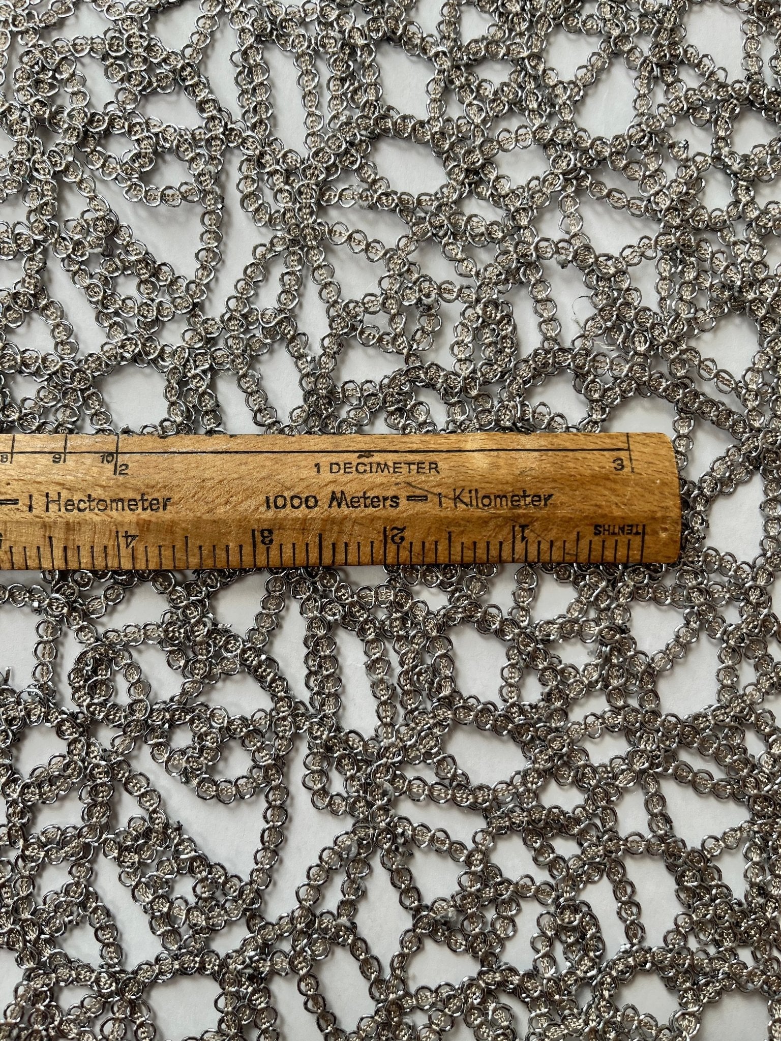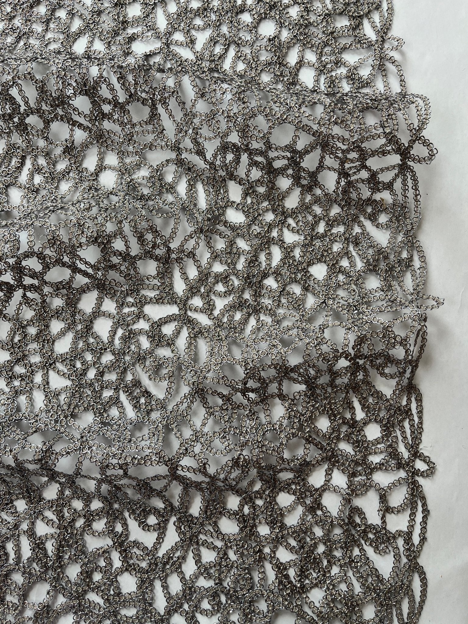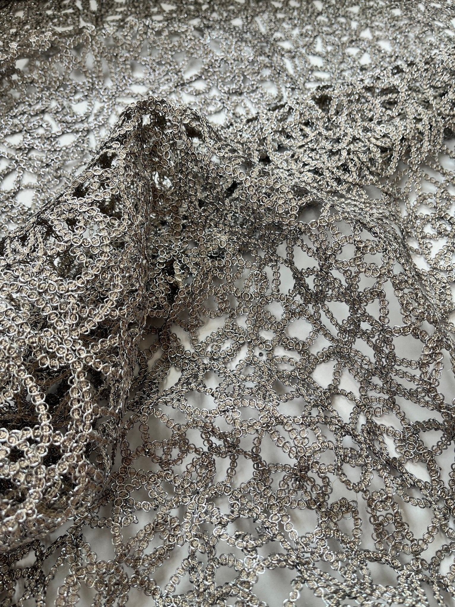 This heavyweight lace overlay is thick yet has a slight drape. It would make a beautiful overlay to a skirt, or jacket for a fancy event.