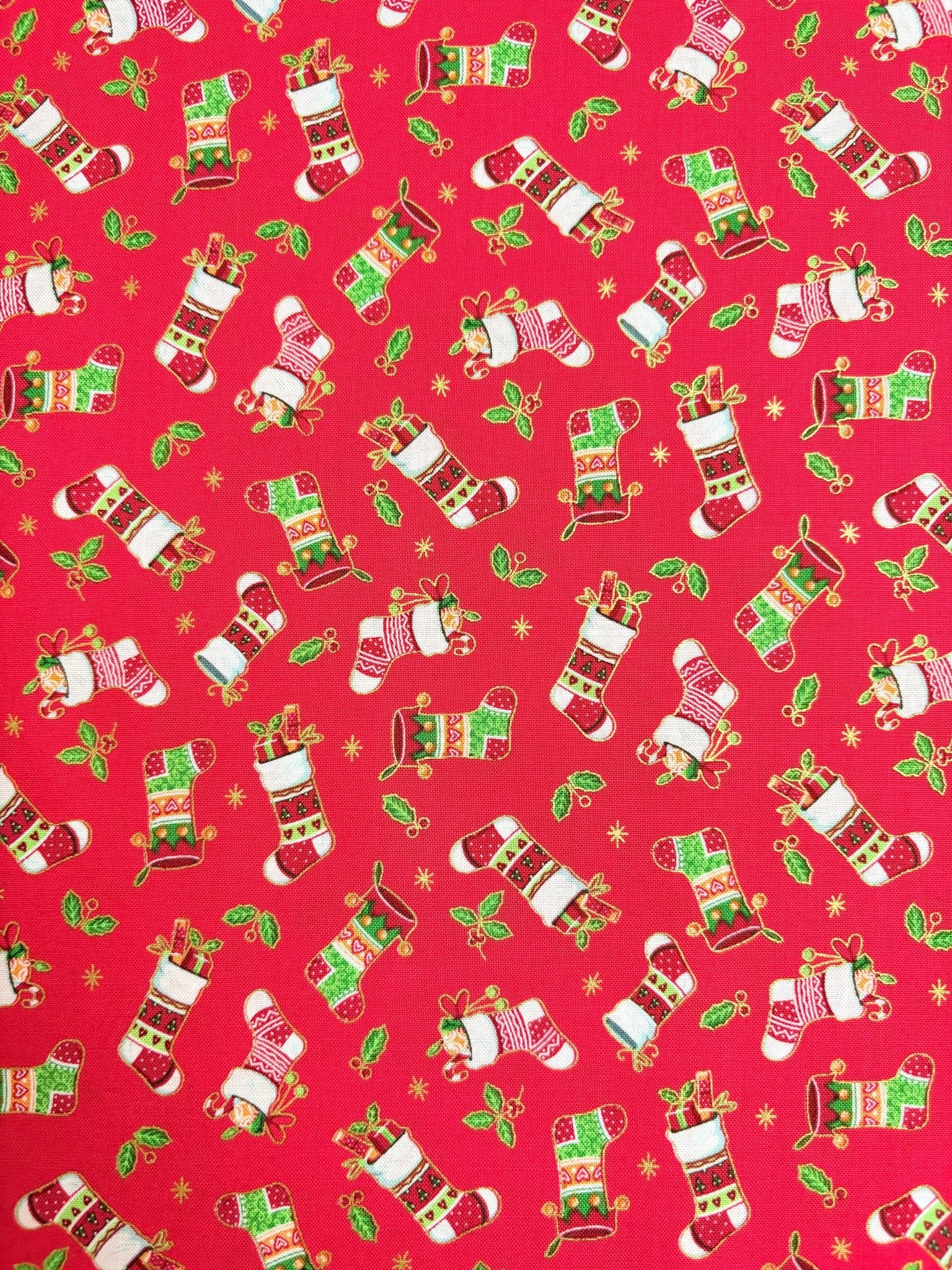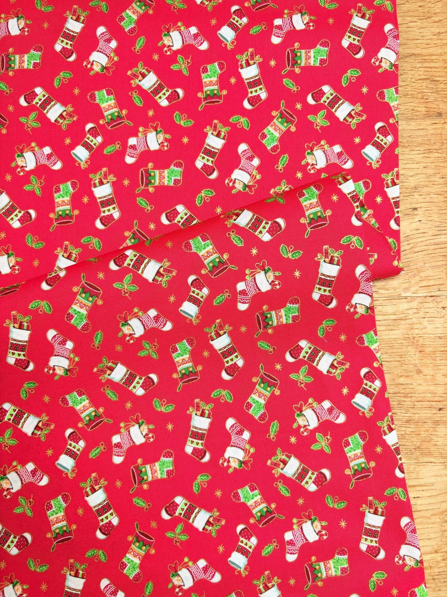Stockings on Red - Merry Christmas - Christmas Fabric