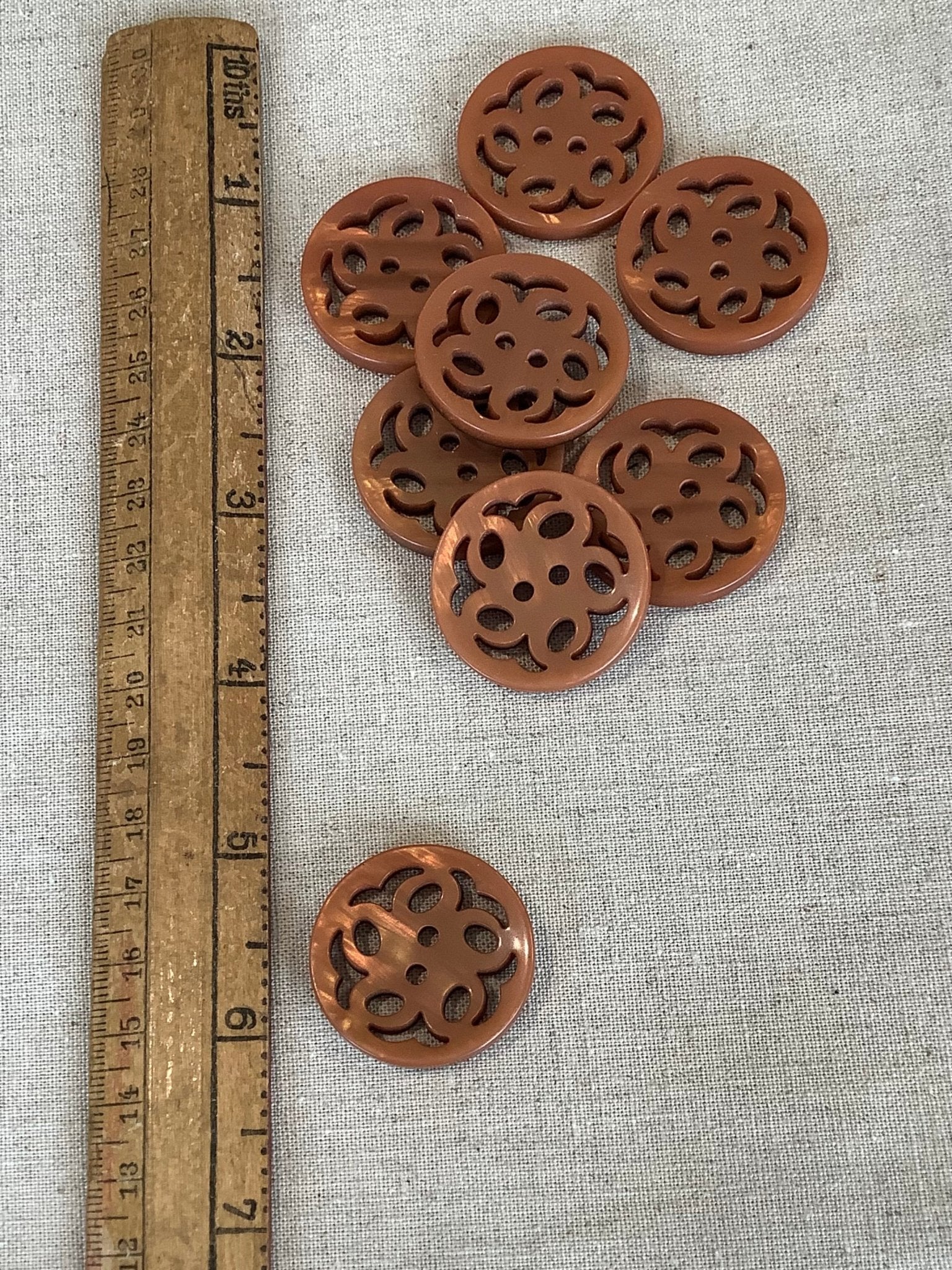 Filigree Flower Button - 30mm - Terracotta is backordered and will ship as soon as it is back in stock.