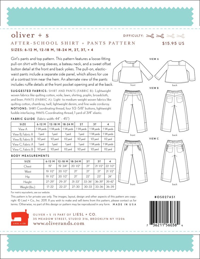 After School Shirt + Pants Sewing Pattern - Oliver + S