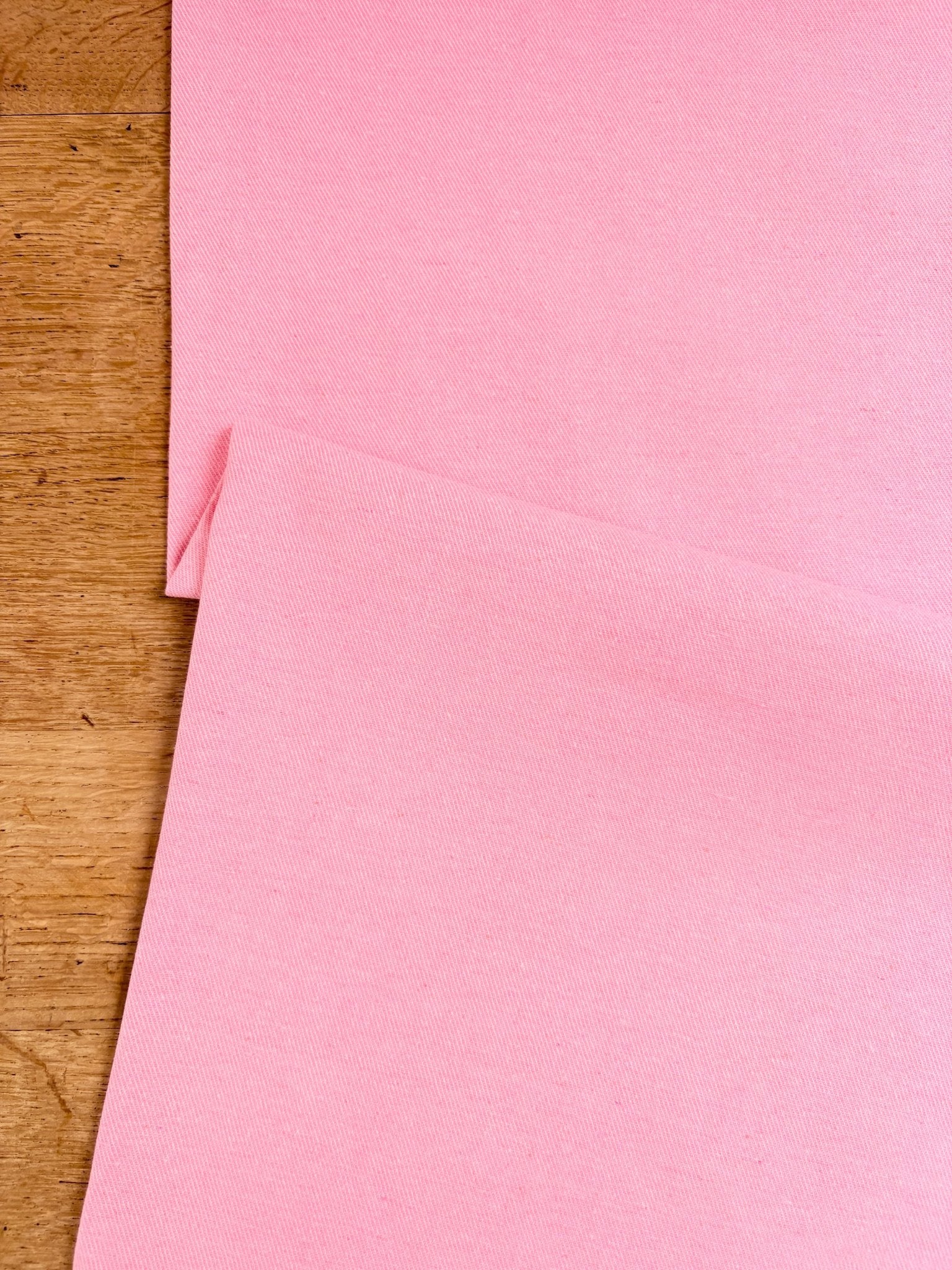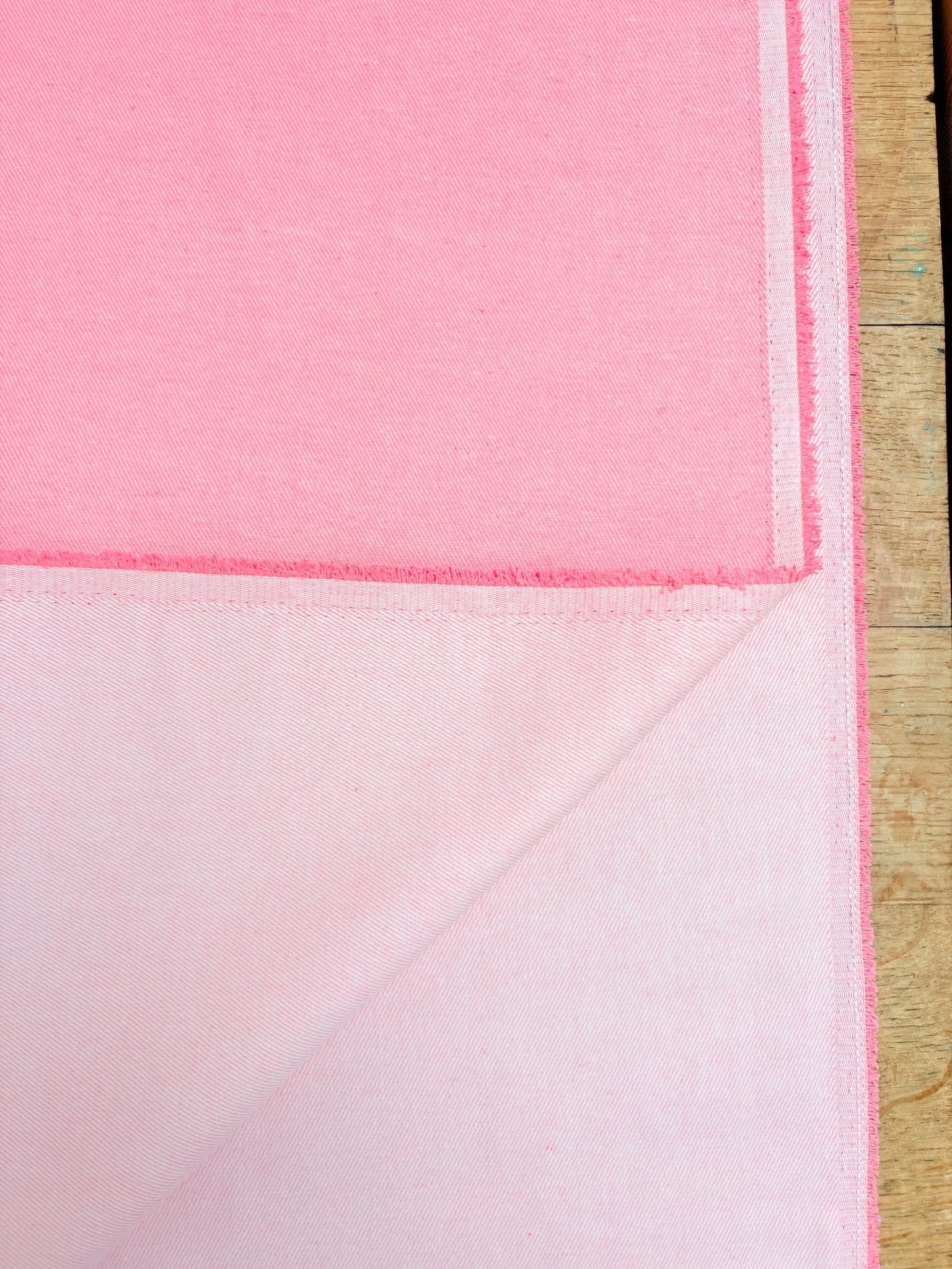 This is a midweight denim with no stretch. The right side has a white and colour twill, with the 'wrong' side being the darker tone - use both sides for a fantastic mix and match outfit!