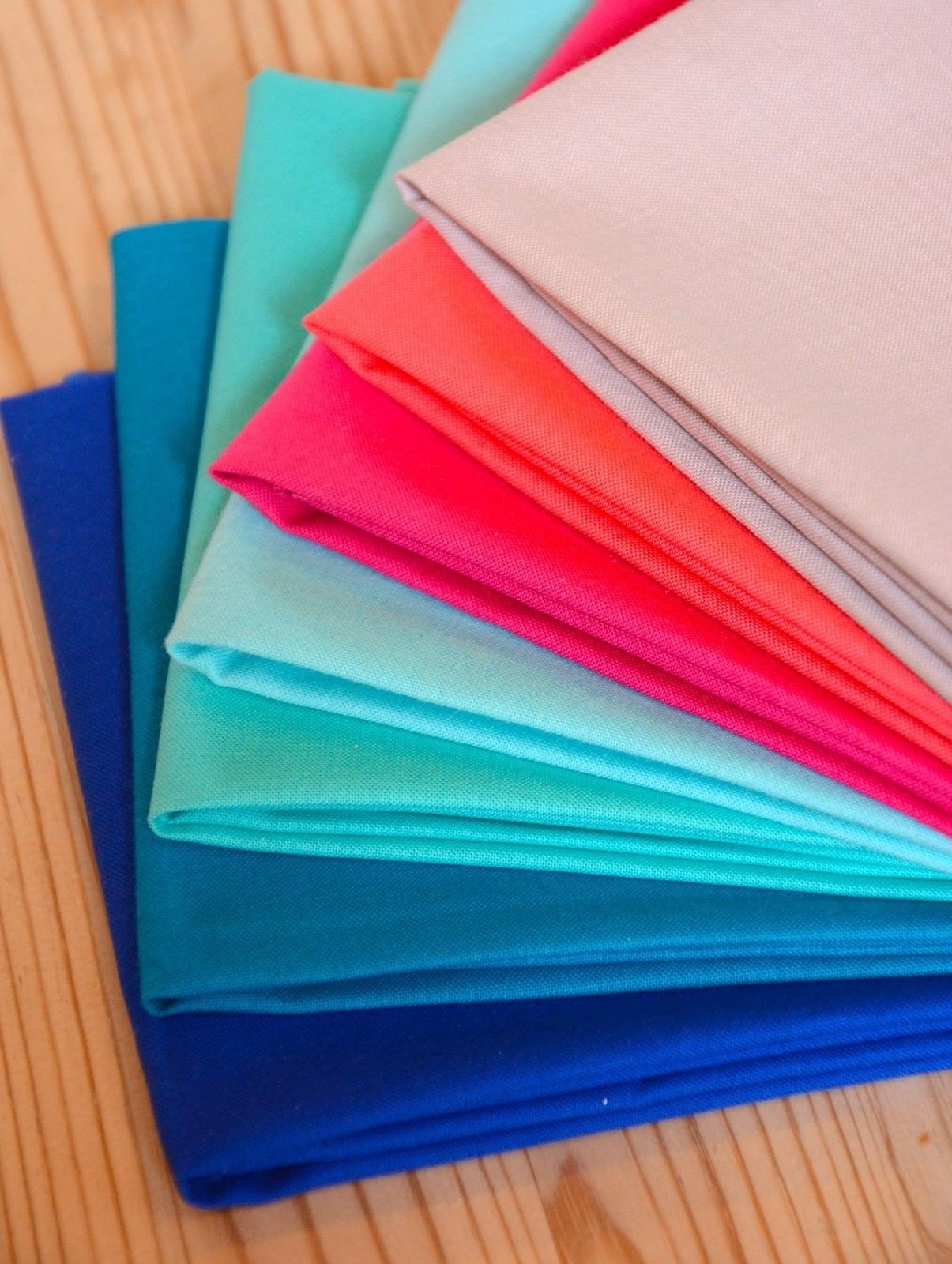 7 fat quarters, with colours picked from our three 100% cotton brands - Kona, Pop and Moda Bella.