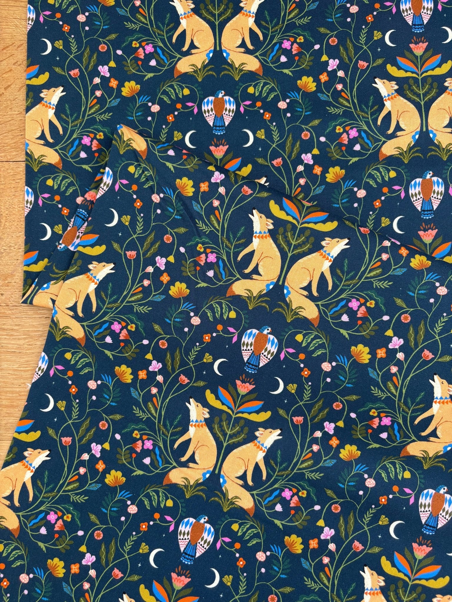 Beautiful fox print on a navy background. From the Desert Moon collection by Bethan Janine for Dashwood Studios.