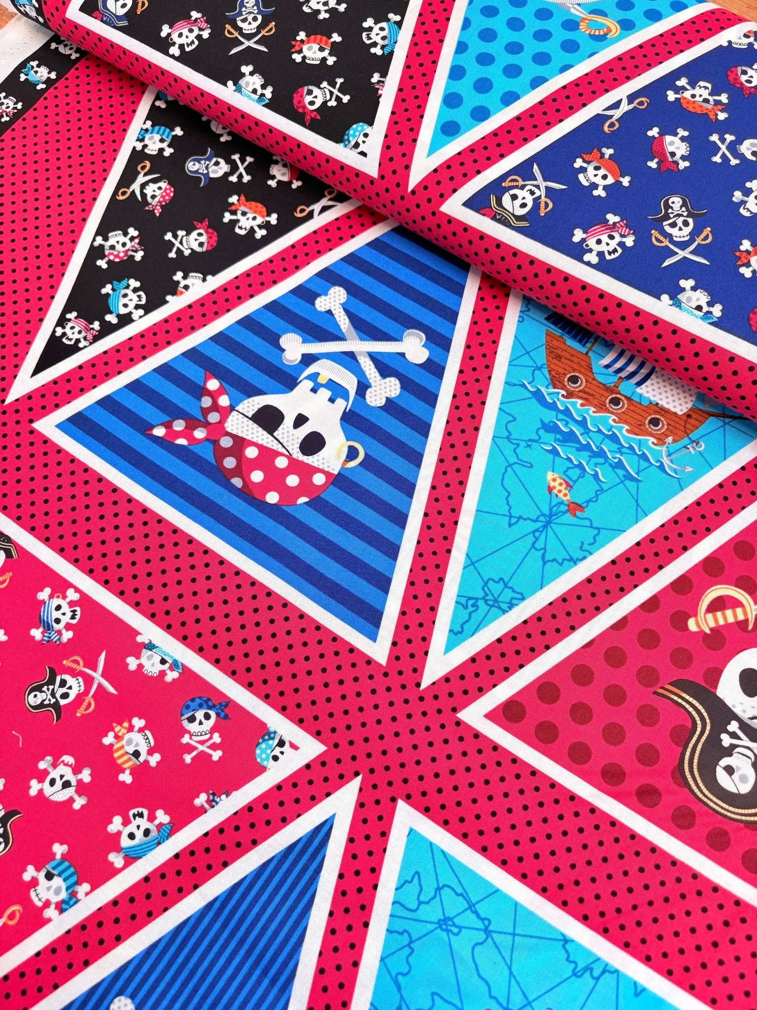 Pirate Bunting Panel - 60cm x 110cm - Makower is backordered and will ship as soon as it is back in stock.