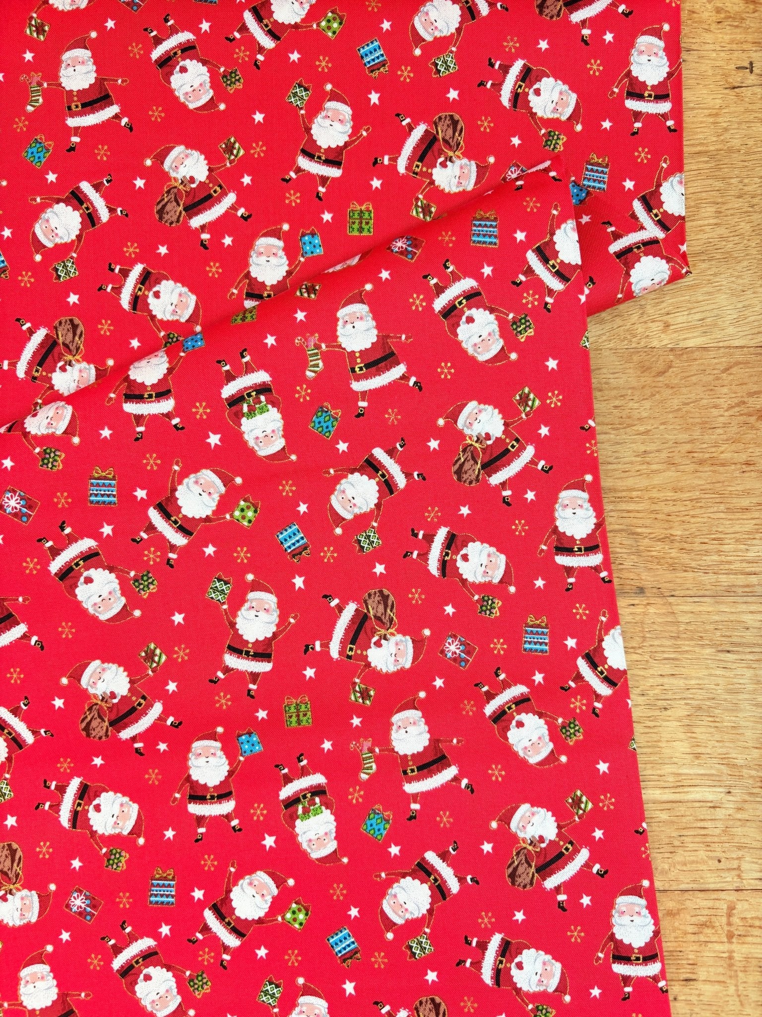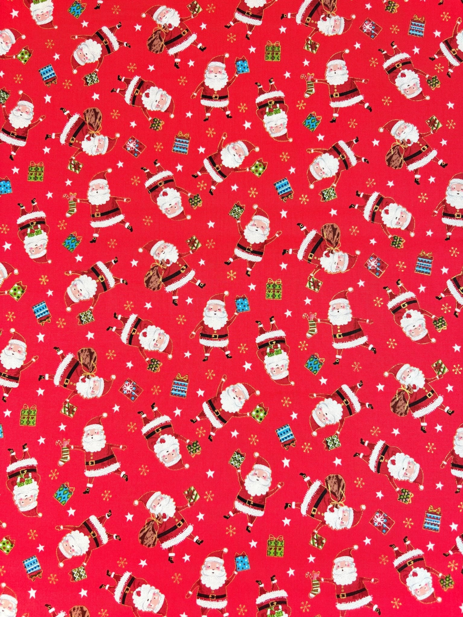 This sweet christmas collection from Makower features fun christmassy motifs such as santa, gifts, snowflakes, baubles and more.  The prints are overlaid with gold accents, and are perfect for all your christmassy projects!