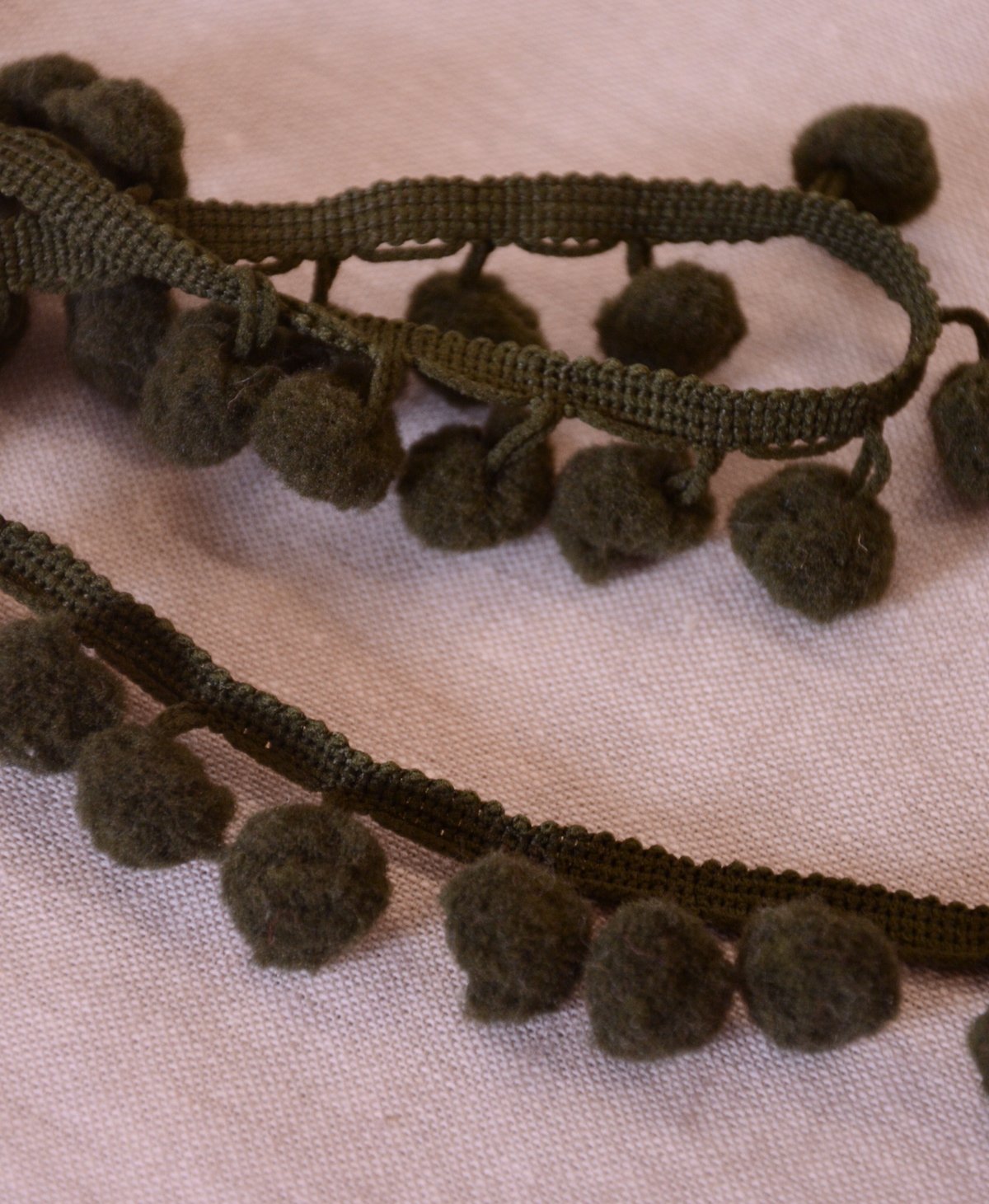 Pom Pom Trim - 25mm - Old Green is backordered and will ship as soon as it is back in stock.
